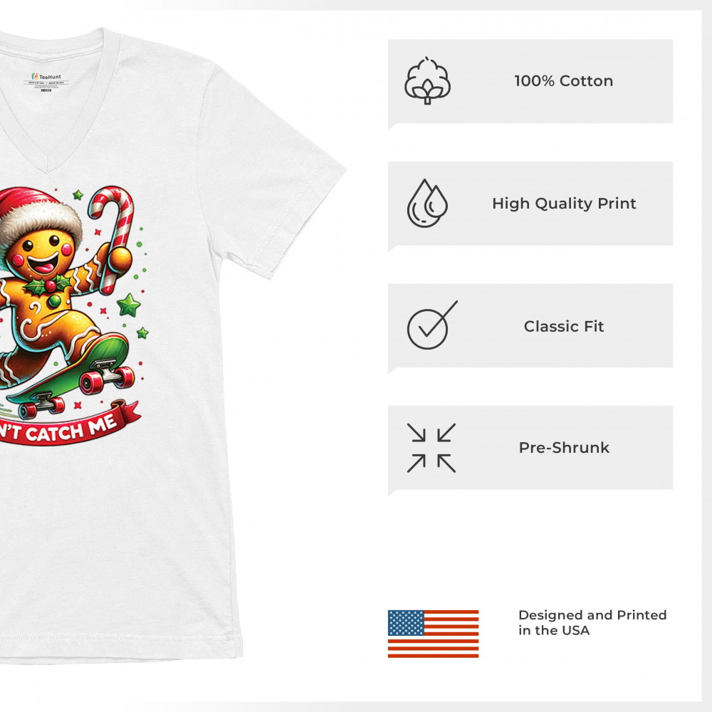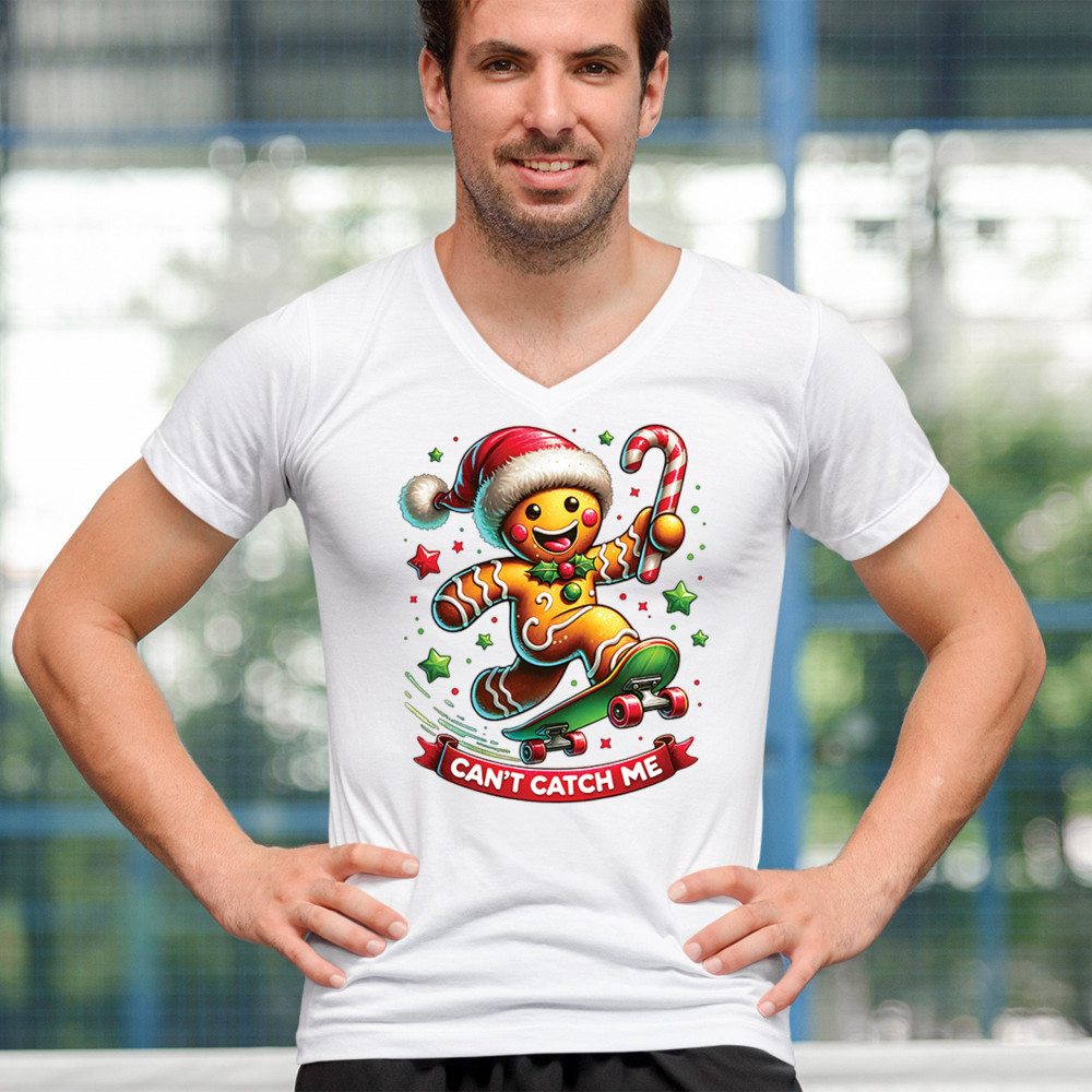 A fun Christmas design featuring a gingerbread character on a skateboard, candy cane in hand, and bright festive colors. Perfect for holiday party outfits, family gatherings, Christmas photos, festive humor fans, stocking stuffer gifting, winter celebrations, and anyone who loves playful seasonal graphics with cheerful personality.