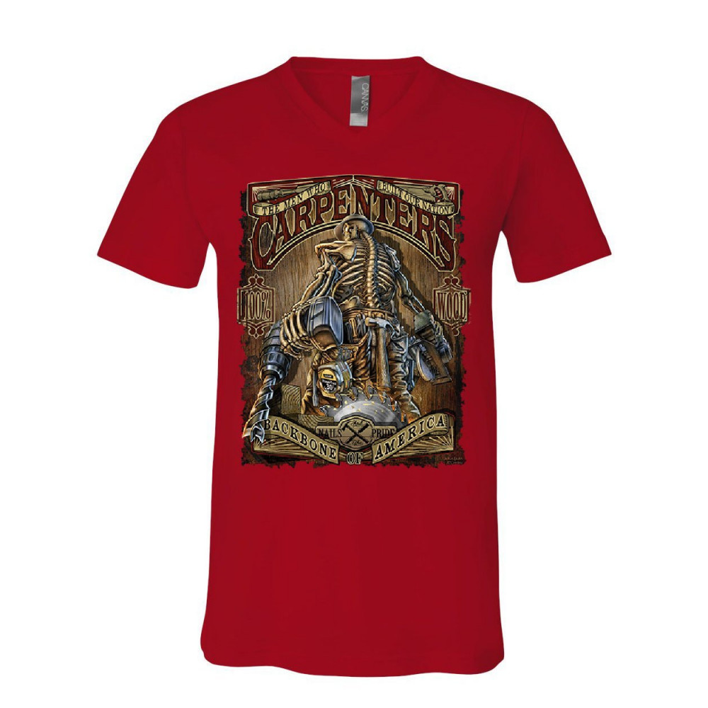 CARPENTERS - BACKBONE OF AMERICA carpenters backbone of america v-neck t-shirt blue collar job craftsman tee red