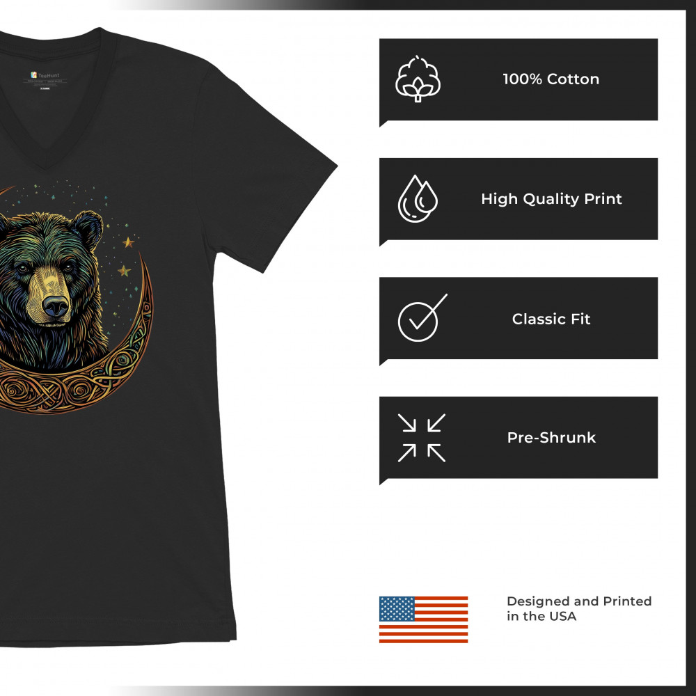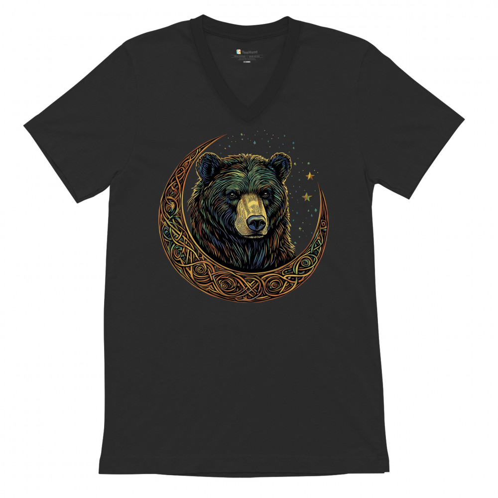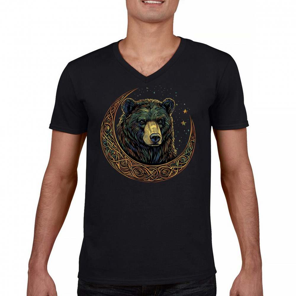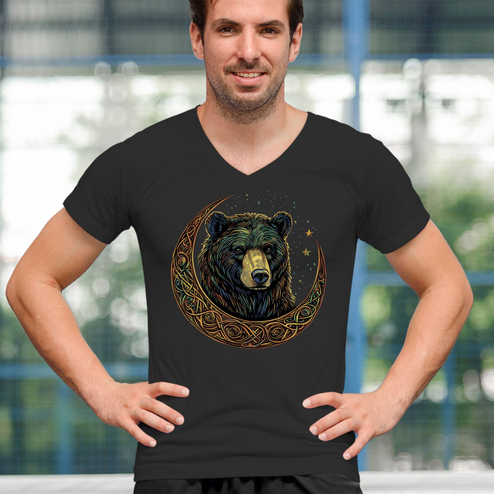 CELTIC MOON BEAR v-neck t-shirt mystical forest animal wildlife celestial tee black