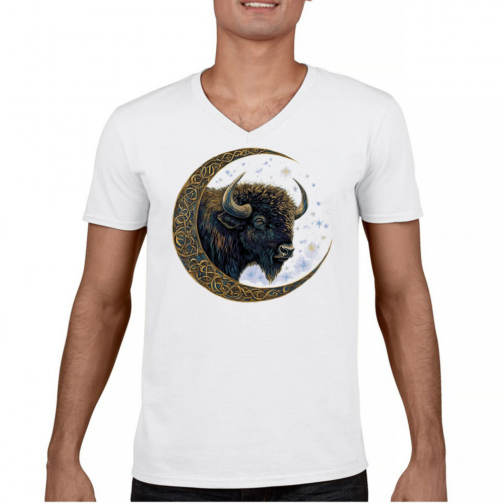 Mystical bison in Celtic moon—perfect for spiritual seekers, art fans, stargazers, and lovers of nature, tribal design, and cosmic energy.