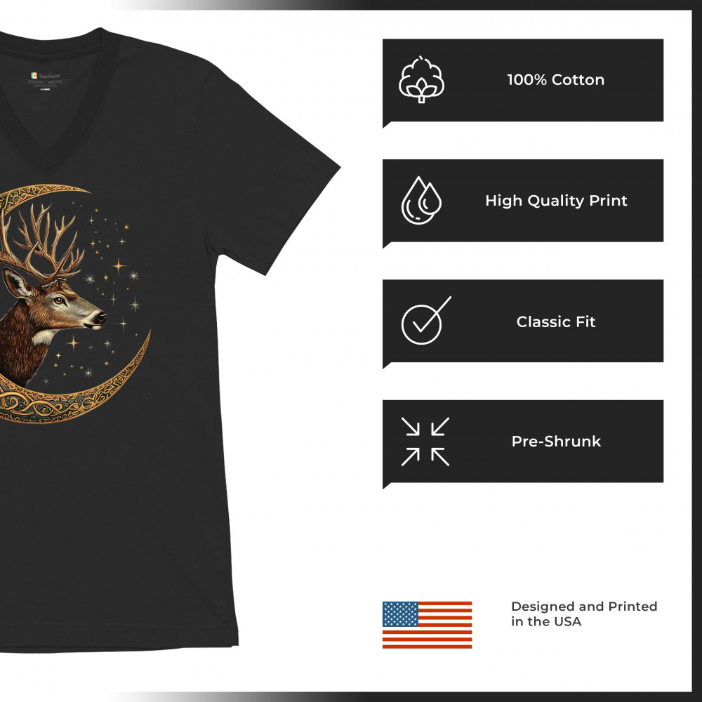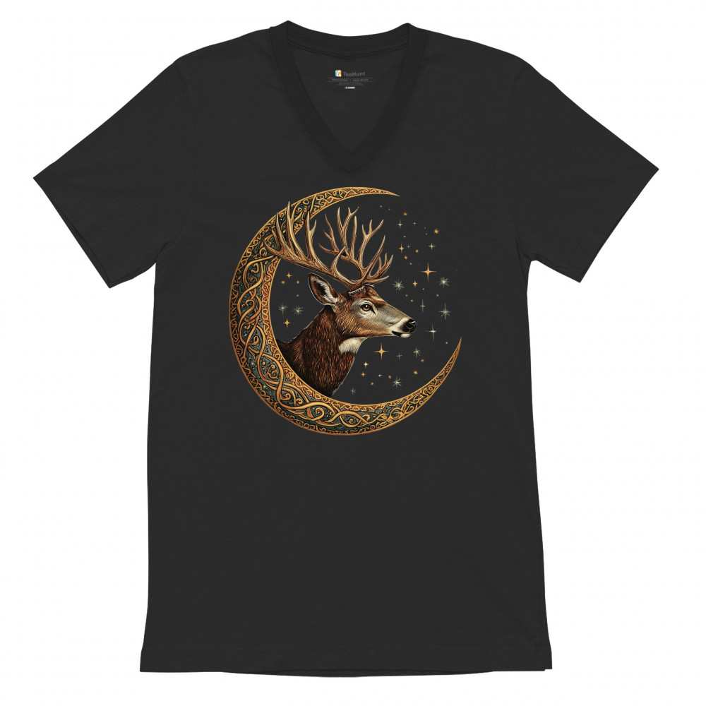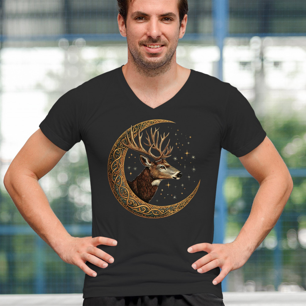 CELTIC MOON DEER v-neck t-shirt north mystic nature spiritual nordic stag tee black