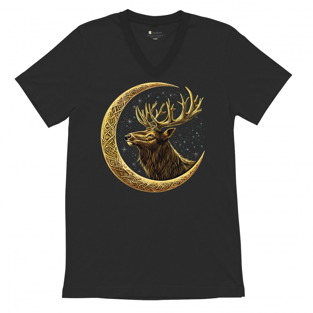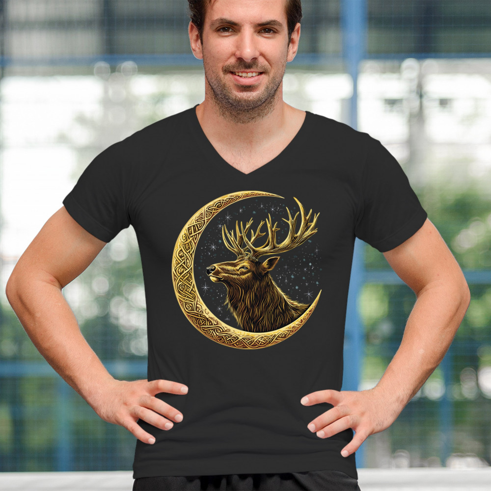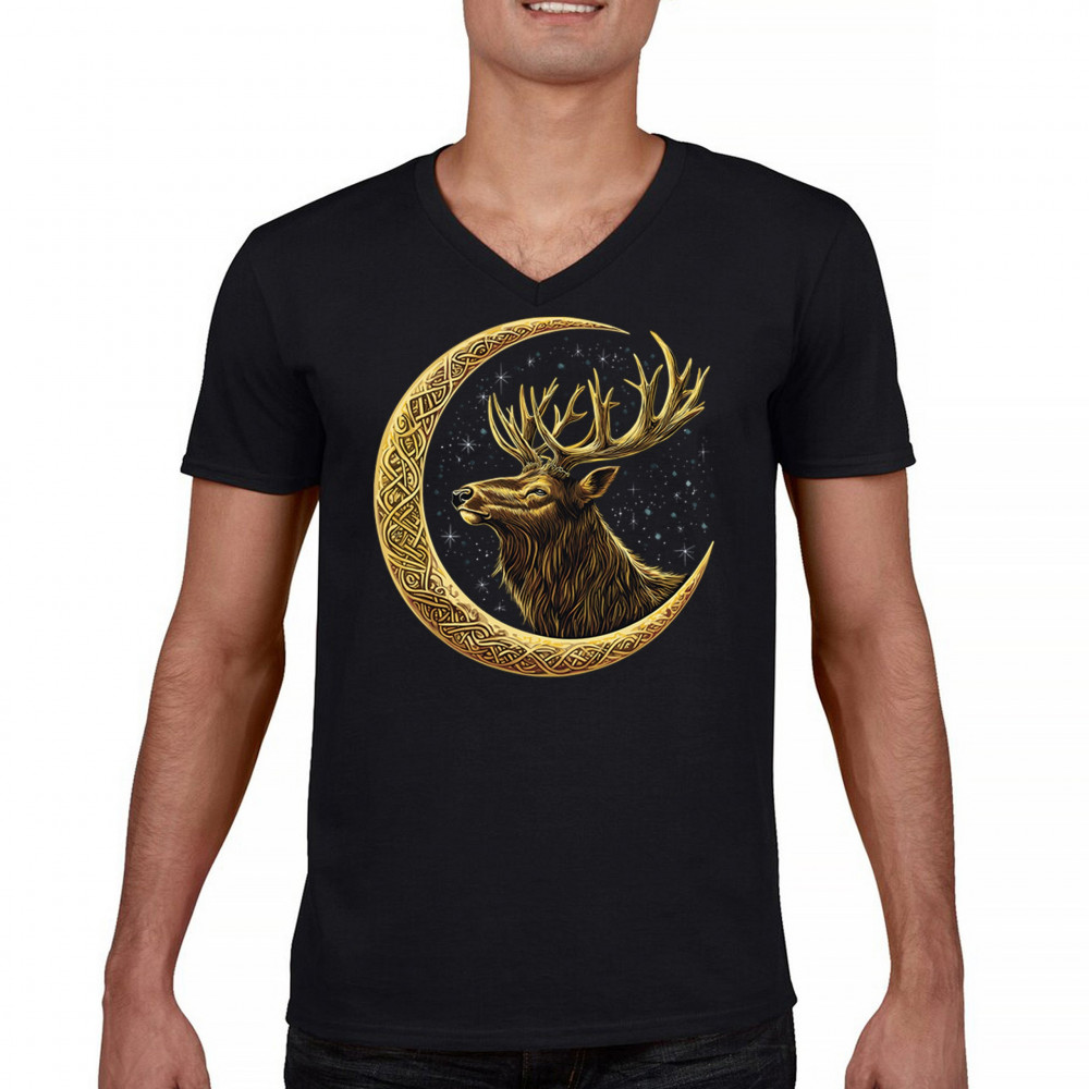 CELTIC MOON ELK v-neck t-shirt north mystic nature spiritual nordic buck tee black