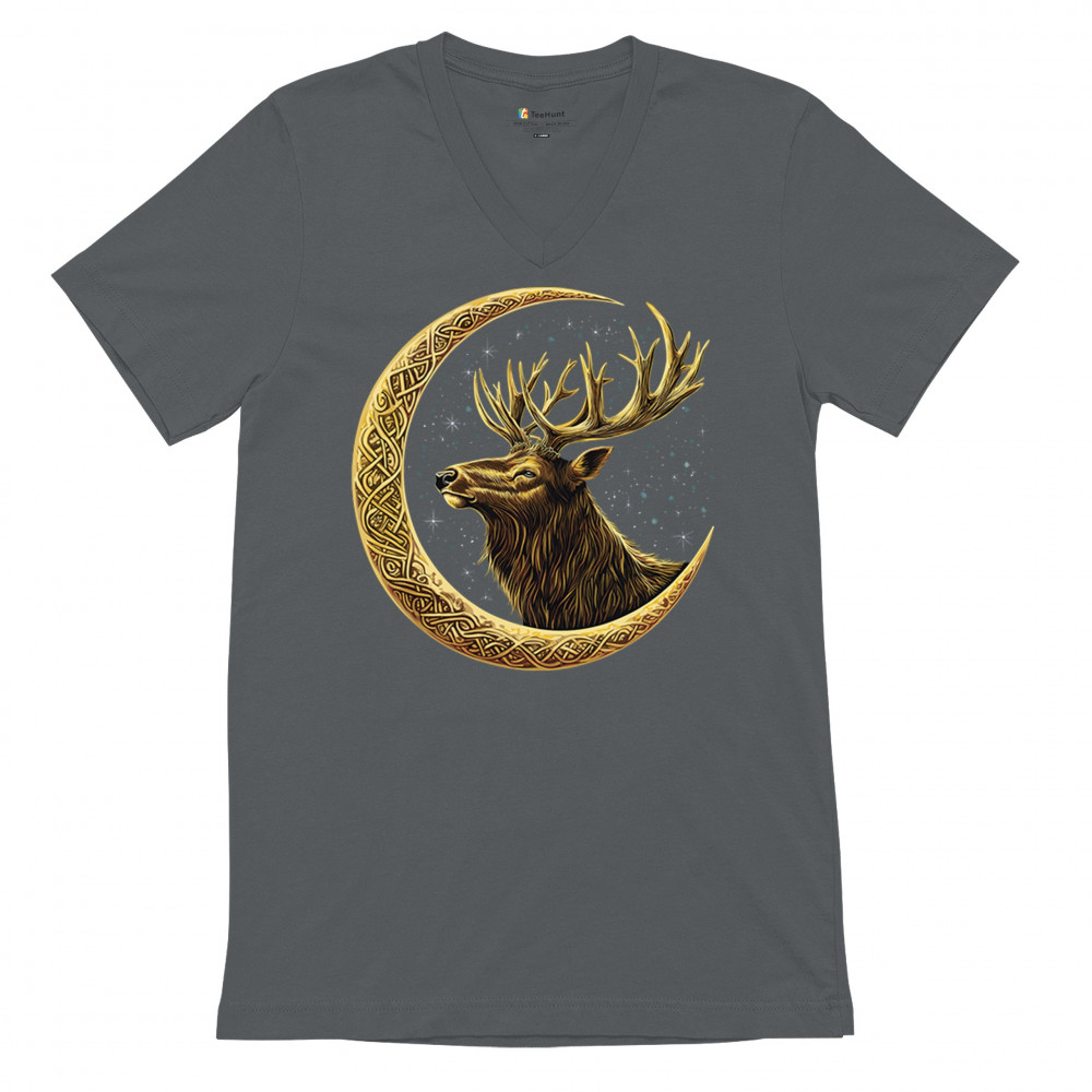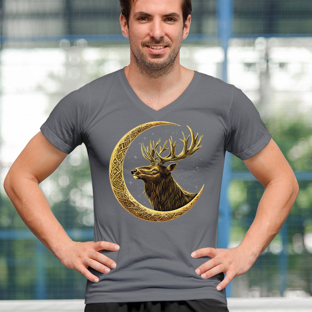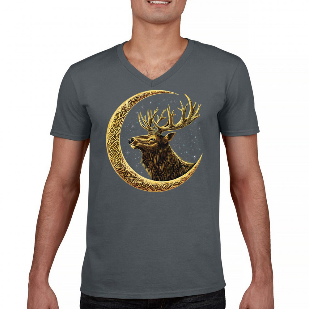 Celtic stag design with golden moon and cosmic stars. Symbolizes forest strength, leadership, and spiritual energy. Perfect for nature lovers.