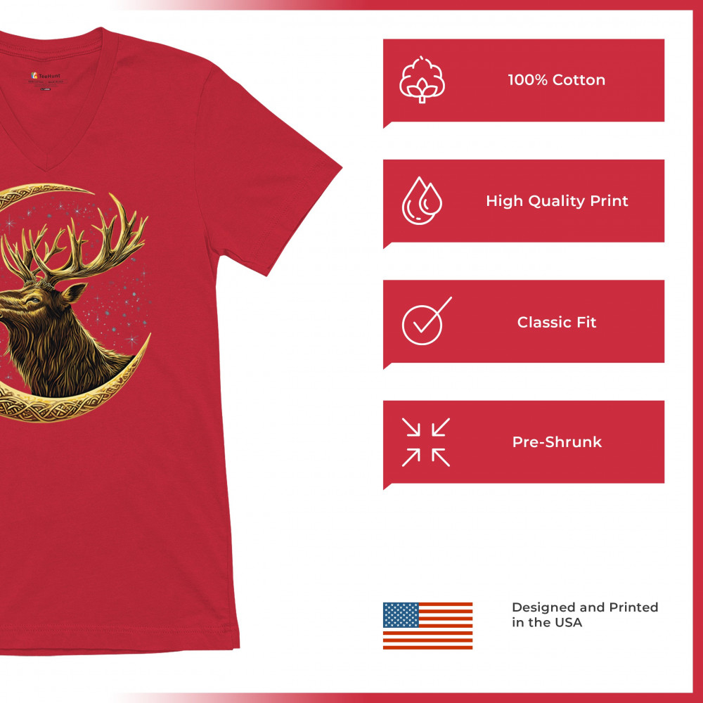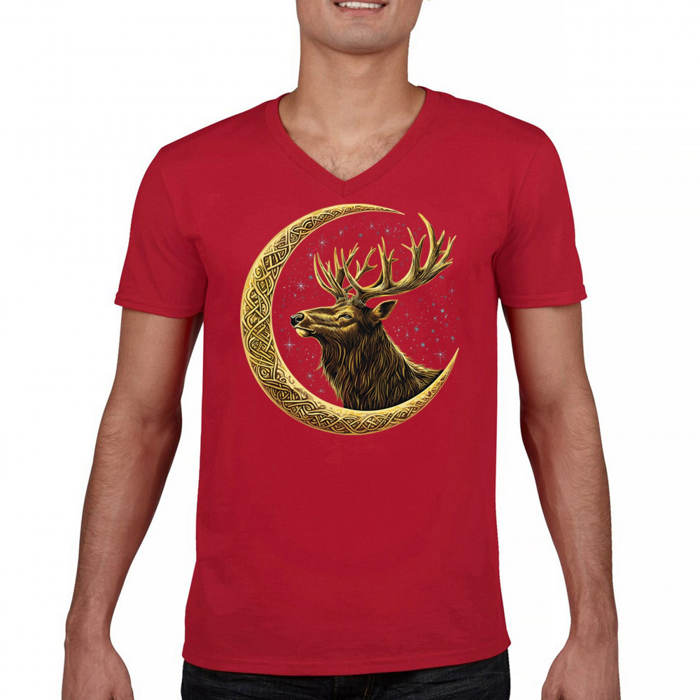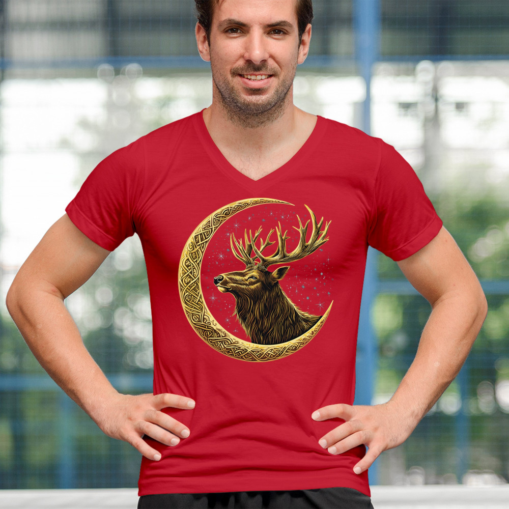 Celtic stag design with golden moon and cosmic stars. Symbolizes forest strength, leadership, and spiritual energy. Perfect for nature lovers.