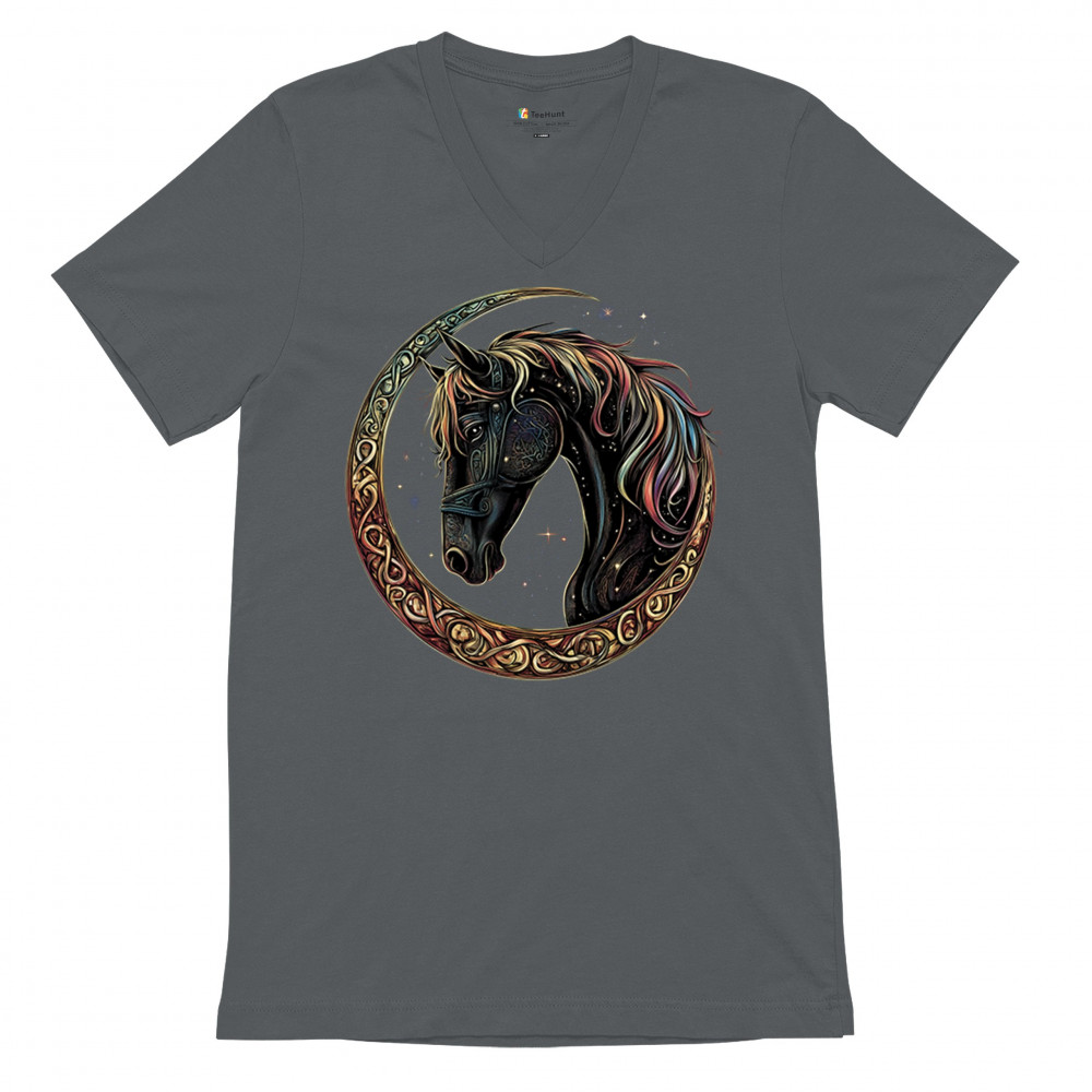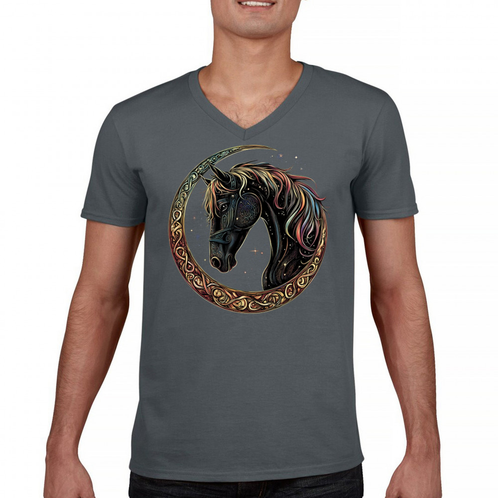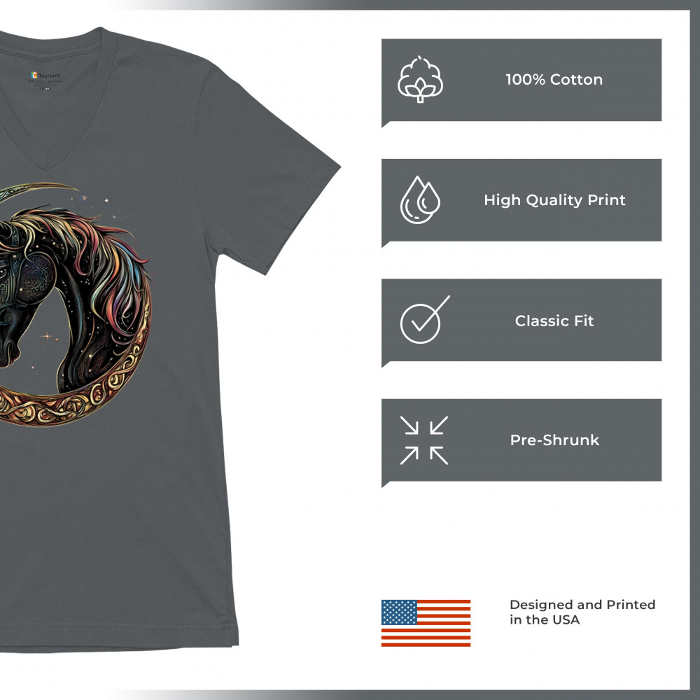 Celebrate the power and grace of the cosmos with this majestic black horse framed by a golden Celtic crescent moon. Its rainbow mane and celestial body symbolize strength, movement, mystery, and spiritual magic. A stunning piece for fantasy fans, equestrians, and dreamers who love horses and stars.