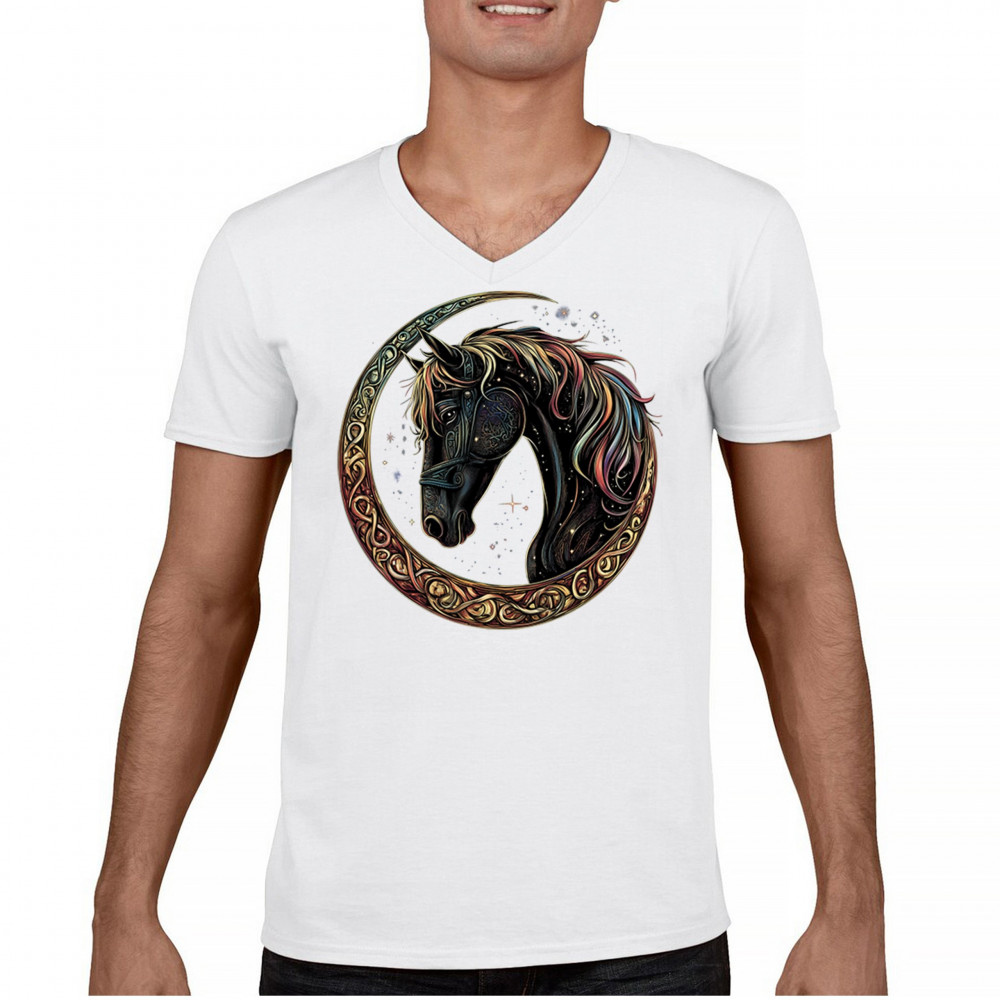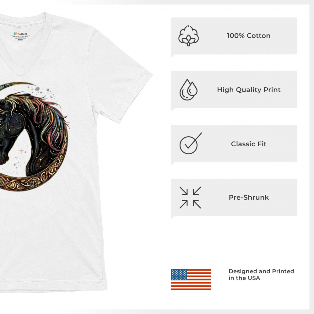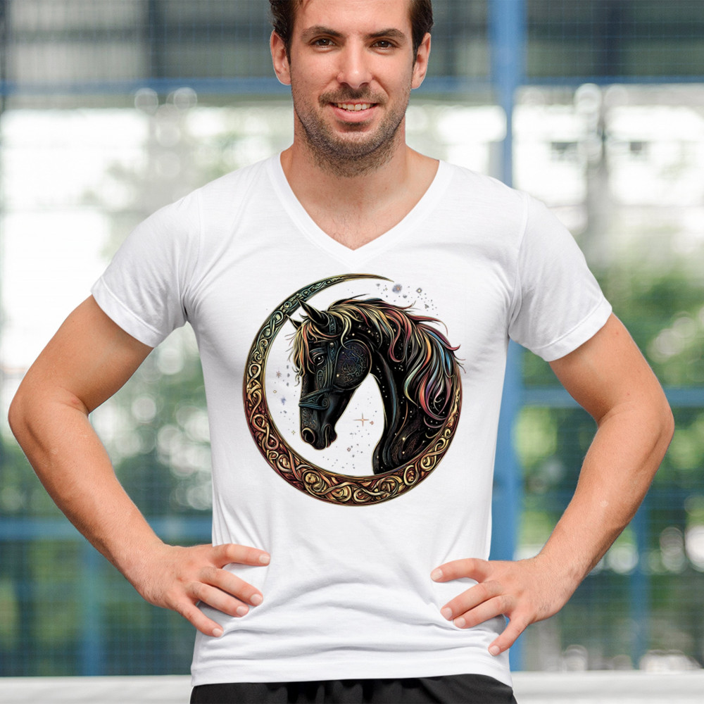 Celebrate the power and grace of the cosmos with this majestic black horse framed by a golden Celtic crescent moon. Its rainbow mane and celestial body symbolize strength, movement, mystery, and spiritual magic. A stunning piece for fantasy fans, equestrians, and dreamers who love horses and stars.