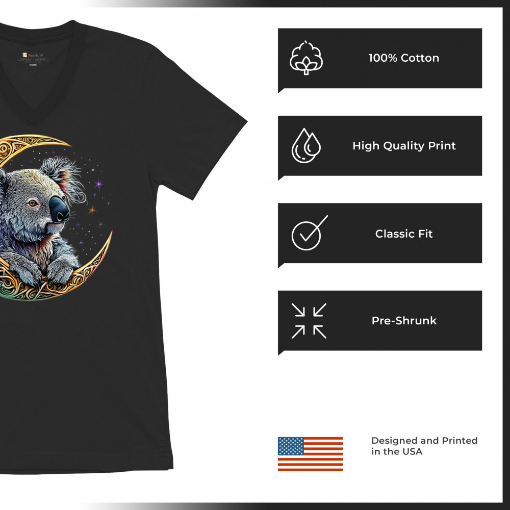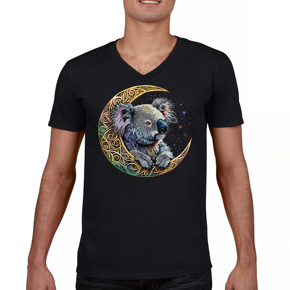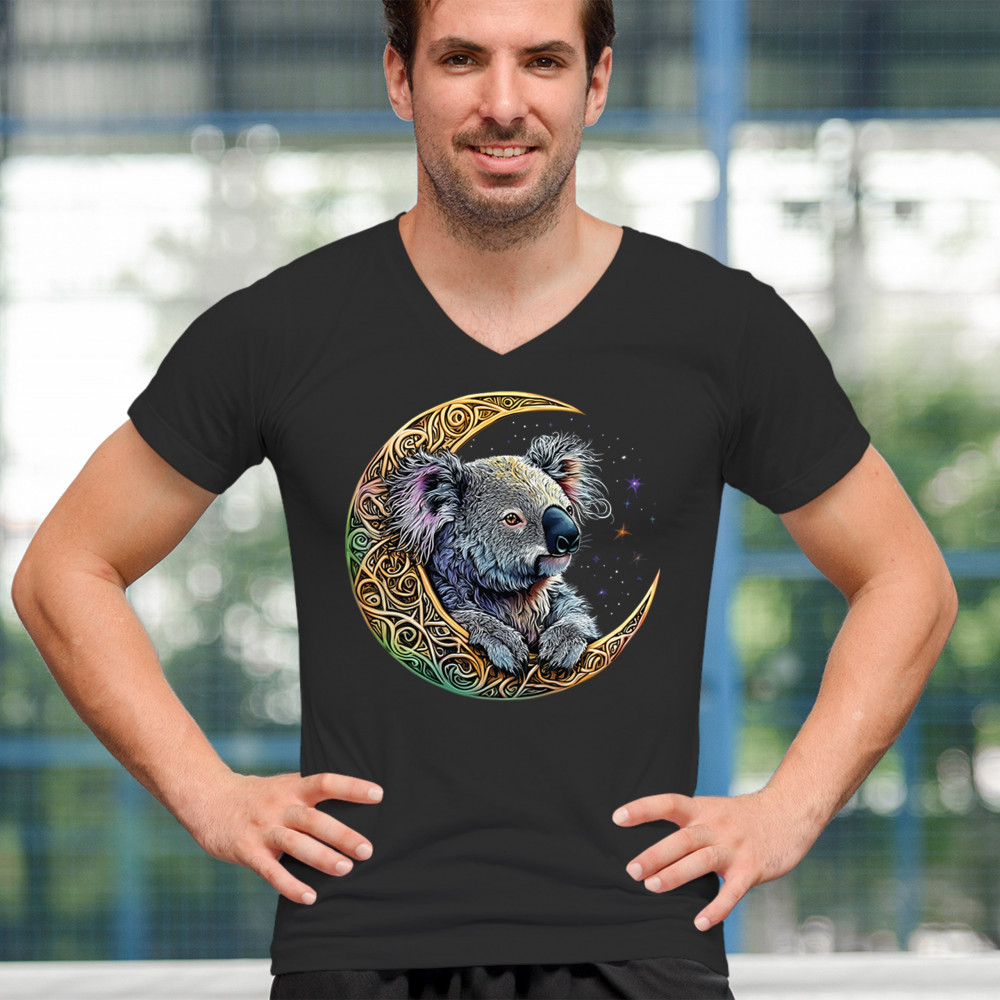 Koala resting in Celtic crescent moon with cosmic sky. A peaceful design for nature lovers, spiritual thinkers, and fantasy art fans.