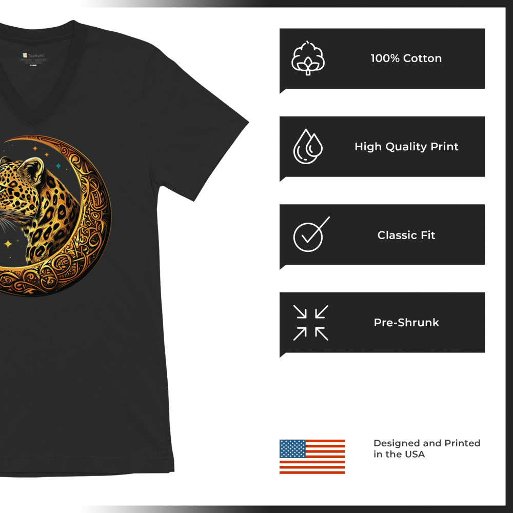 Unleash wild energy and spiritual symbolism with this bold leopard design set inside a golden Celtic crescent moon. A cosmic starry background amplifies its mystical vibe, symbolizing agility, independence, and awareness. Perfect for big cat lovers, jungle animal fans, and seekers of fantasy or tribal-inspired art.