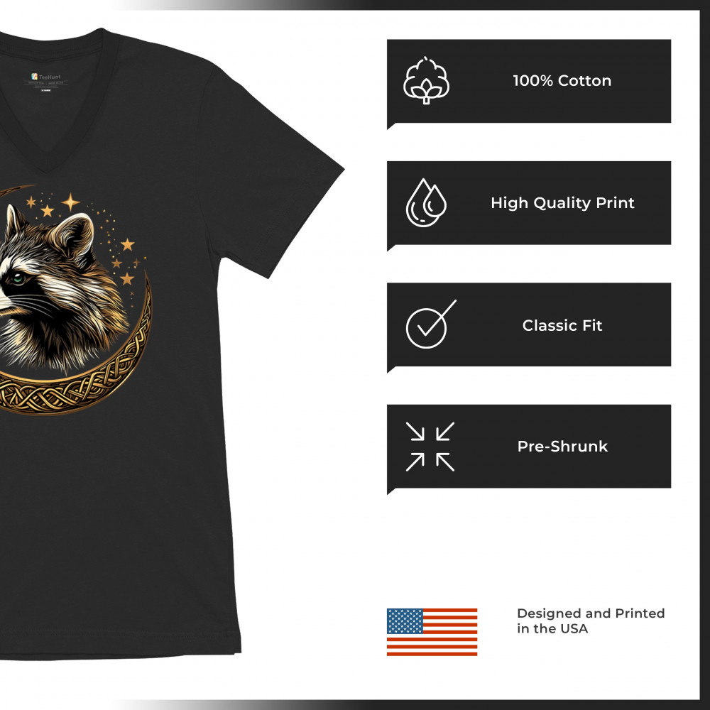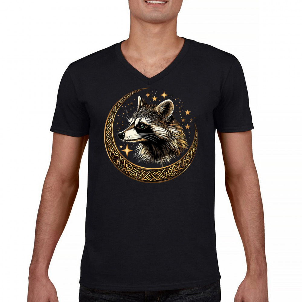 CELTIC MOON RACCOON v-neck t-shirt mystical forest bandit spiritual nordic tee black