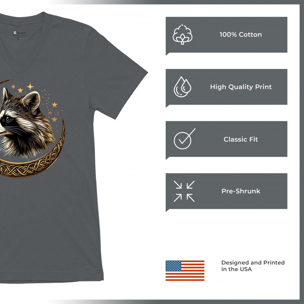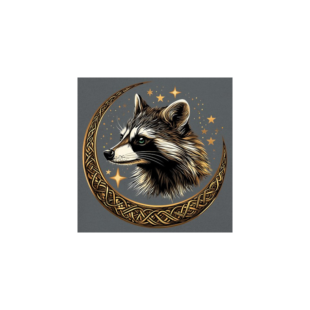 Cosmic raccoon design in Celtic moon. Symbol of adaptability, mystery, and spiritual intelligence. A perfect gift for wild and curious souls.