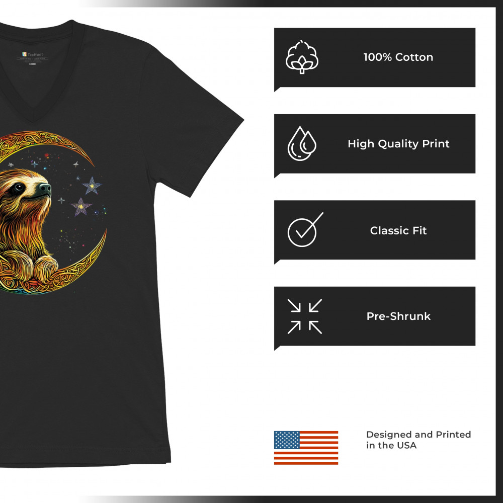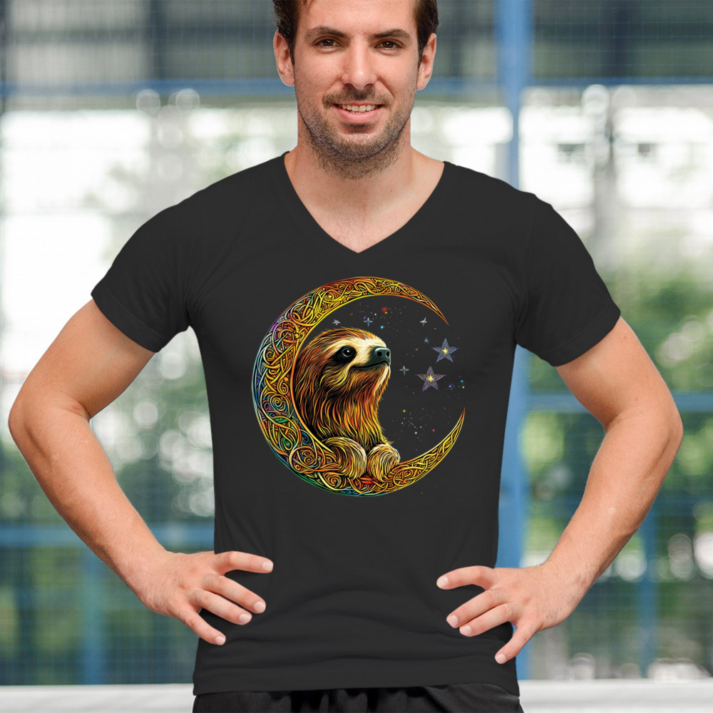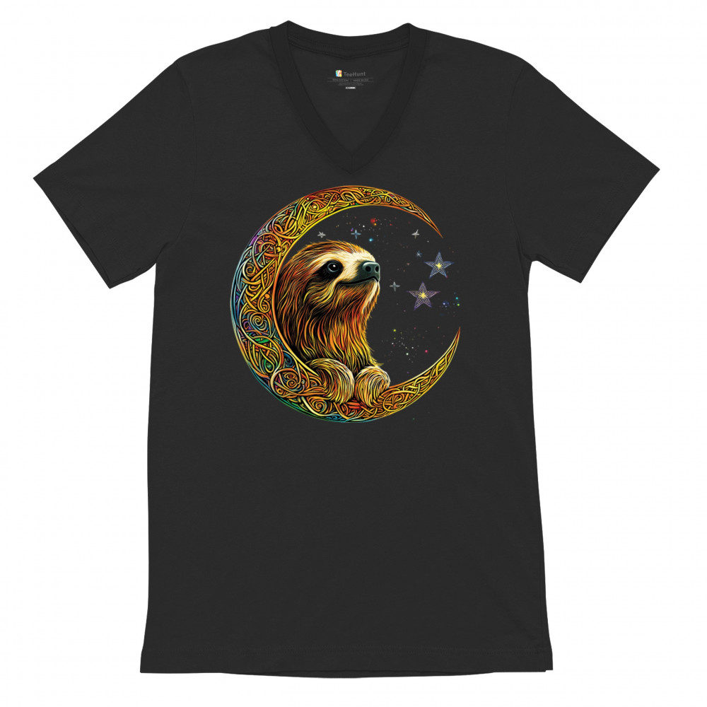 Celebrate peace and presence with this stunning sloth design cradled in a gold Celtic crescent moon. Surrounded by a vibrant starry sky, the image blends jungle whimsy with tribal patterns and mystical vibes. A perfect design for lovers of fantasy animals, mindfulness, and slow living. A beautiful tribute to spiritual stillness and cosmic calm.