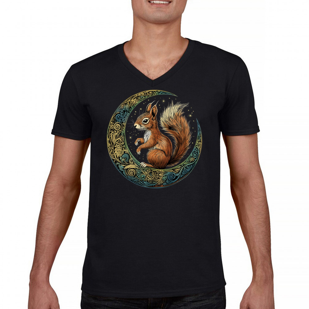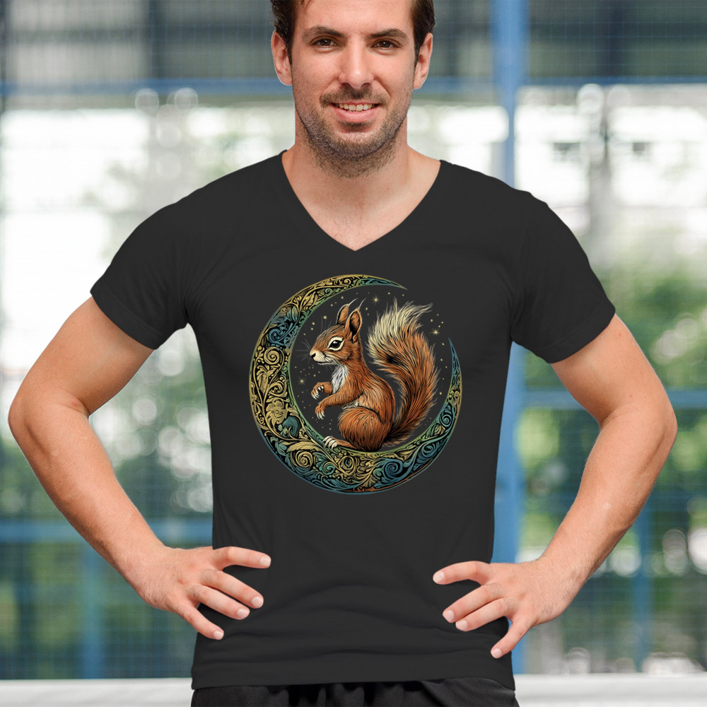 Celebrate agility, awareness, and forest wisdom with this magical red squirrel design. Nestled in a green-gold Celtic crescent moon and backed by a starry cosmic sky, this piece merges natural energy with tribal patterns and celestial wonder. A unique design for animal spirit believers, forest wanderers, and fantasy nature fans.