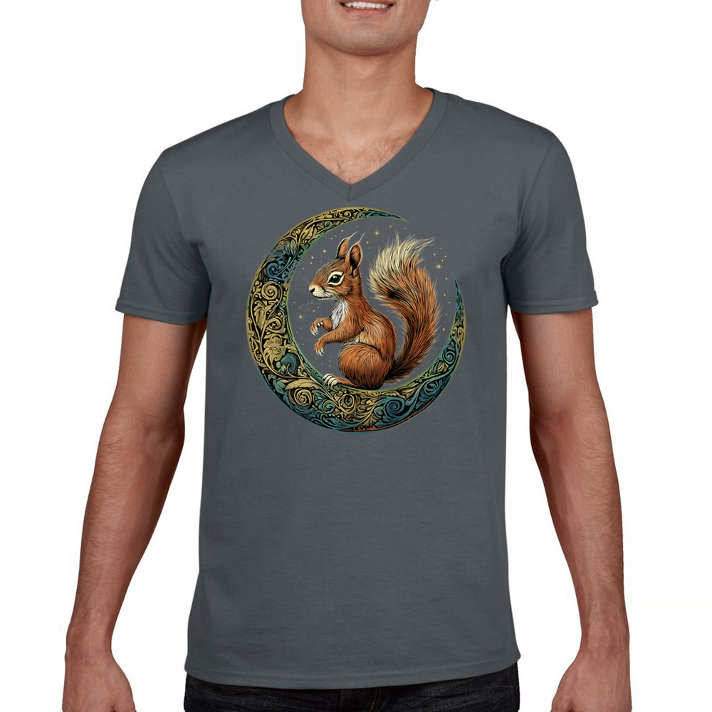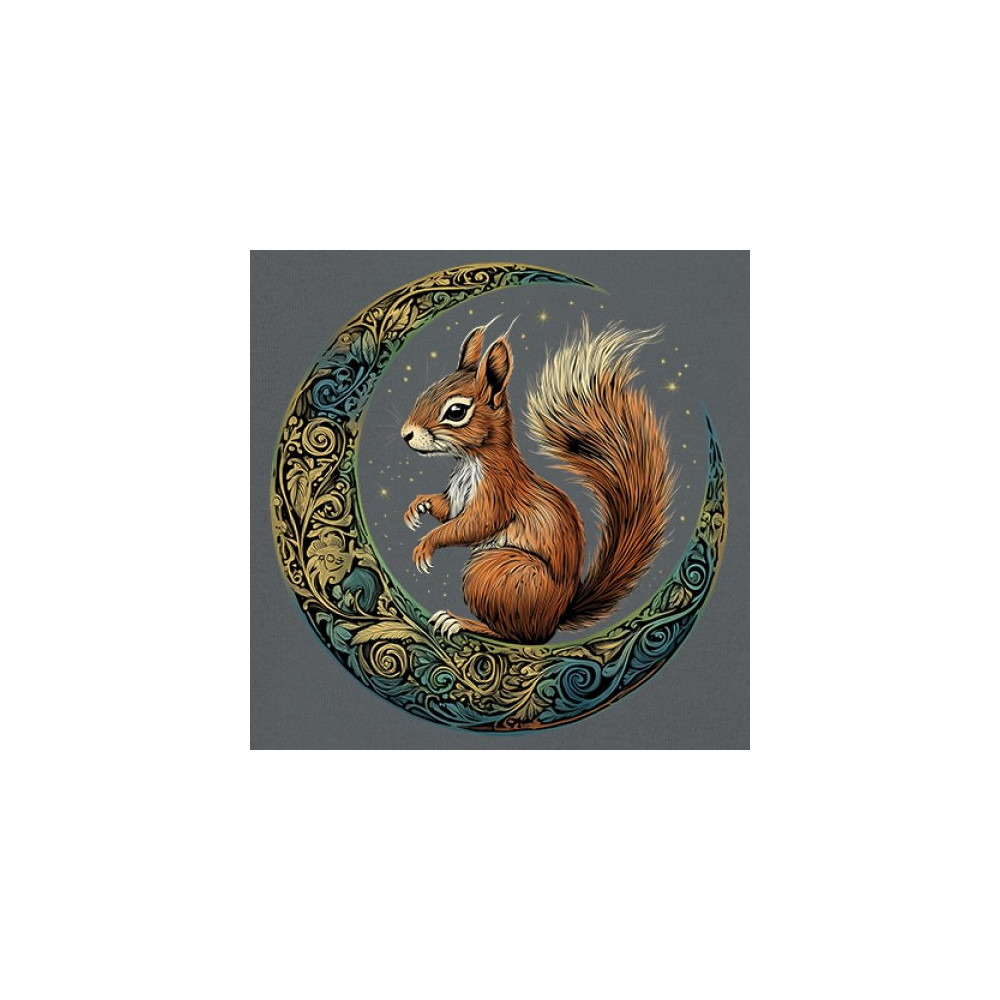 Celebrate agility, awareness, and forest wisdom with this magical red squirrel design. Nestled in a green-gold Celtic crescent moon and backed by a starry cosmic sky, this piece merges natural energy with tribal patterns and celestial wonder. A unique design for animal spirit believers, forest wanderers, and fantasy nature fans.