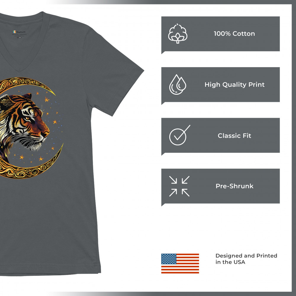 Bold tiger design in Celtic moon with cosmic sky. Symbol of strength, instinct, and jungle mysticism. Great for animal lovers and fantasy fans.