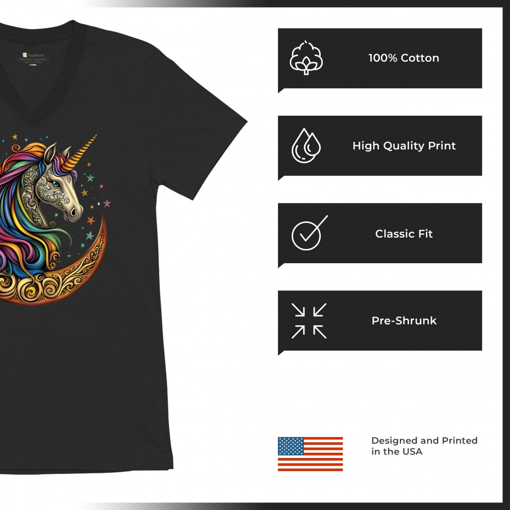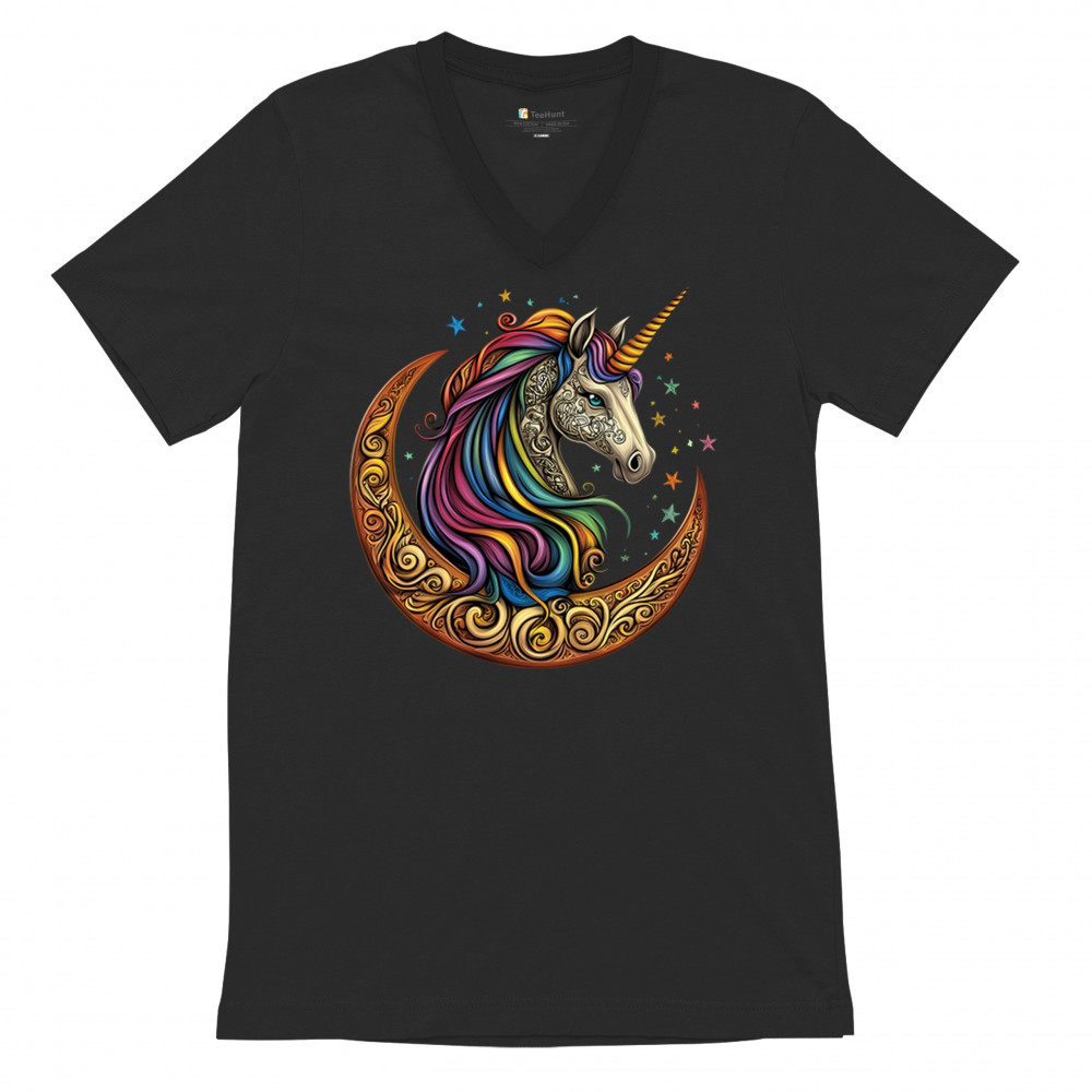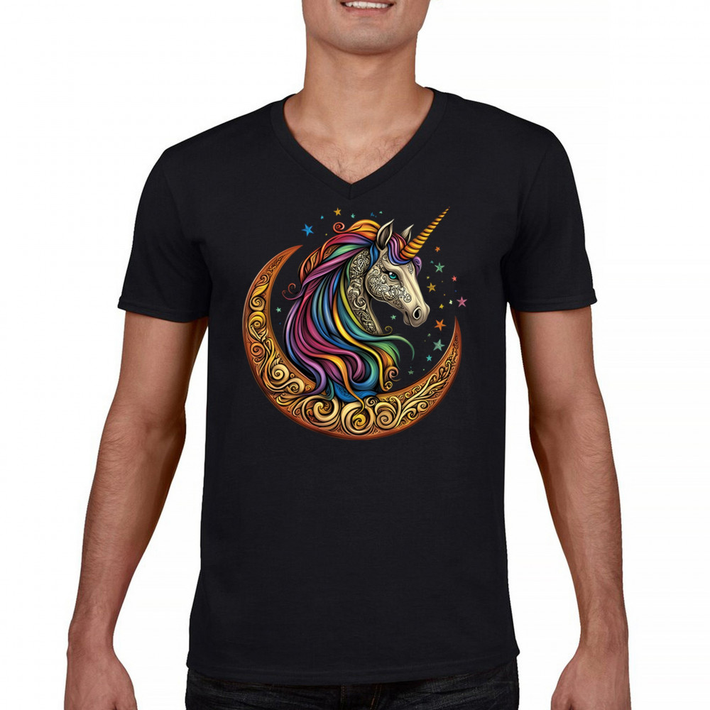 CELTIC MOON UNICORN v-neck t-shirt rainbow fantasy spiritual magic horse tee black
