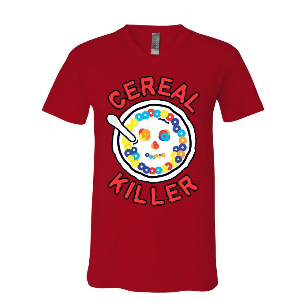 CEREAL KILLER v-neck t-shirt funny breakfast morning meal serial killer tee red