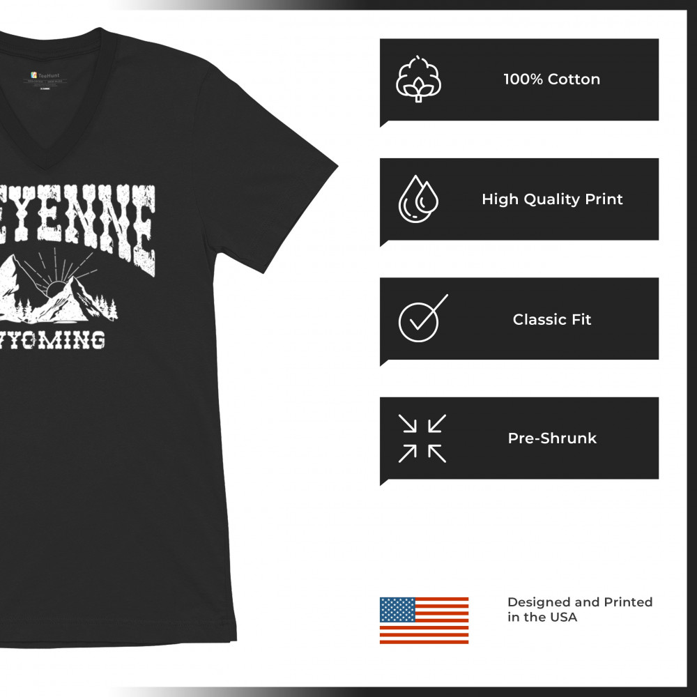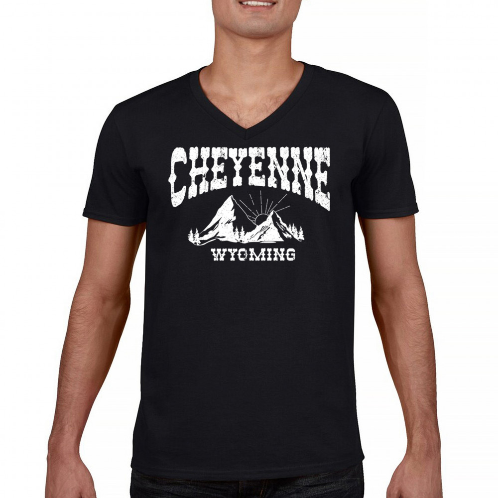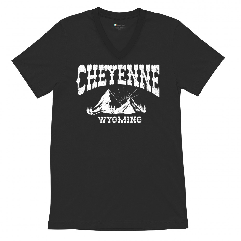 Vintage Cheyenne Wyoming design with mountain sunrise for outdoor lovers and locals. Perfect for travel, hiking, or Western pride.