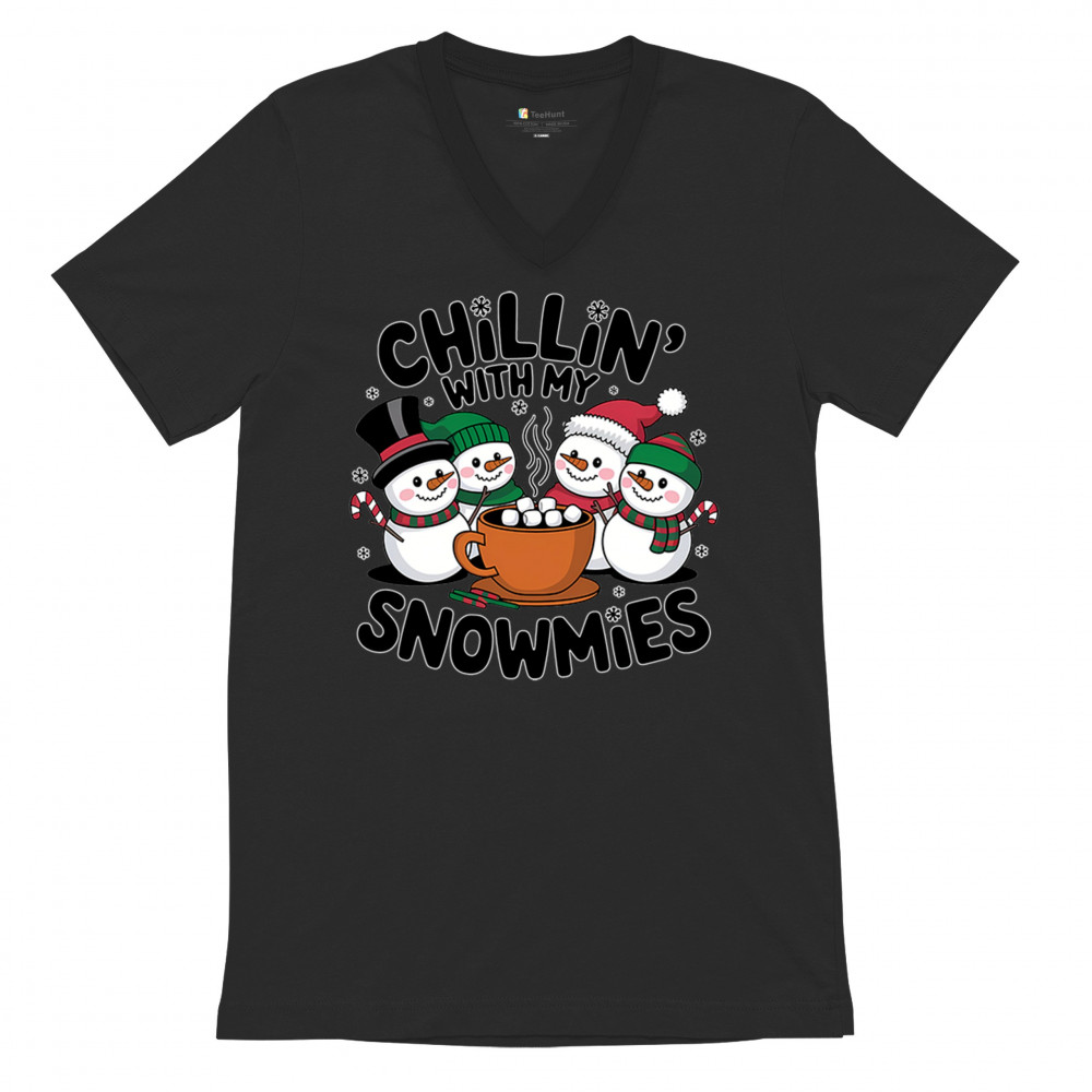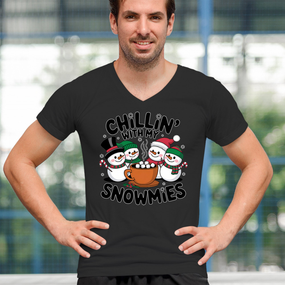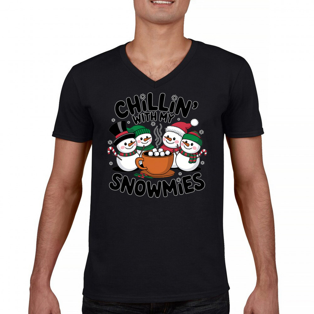 CHILLIN' WITH MY SNOWMIES men's v-neck t-shirt christmas snowman homie festive black