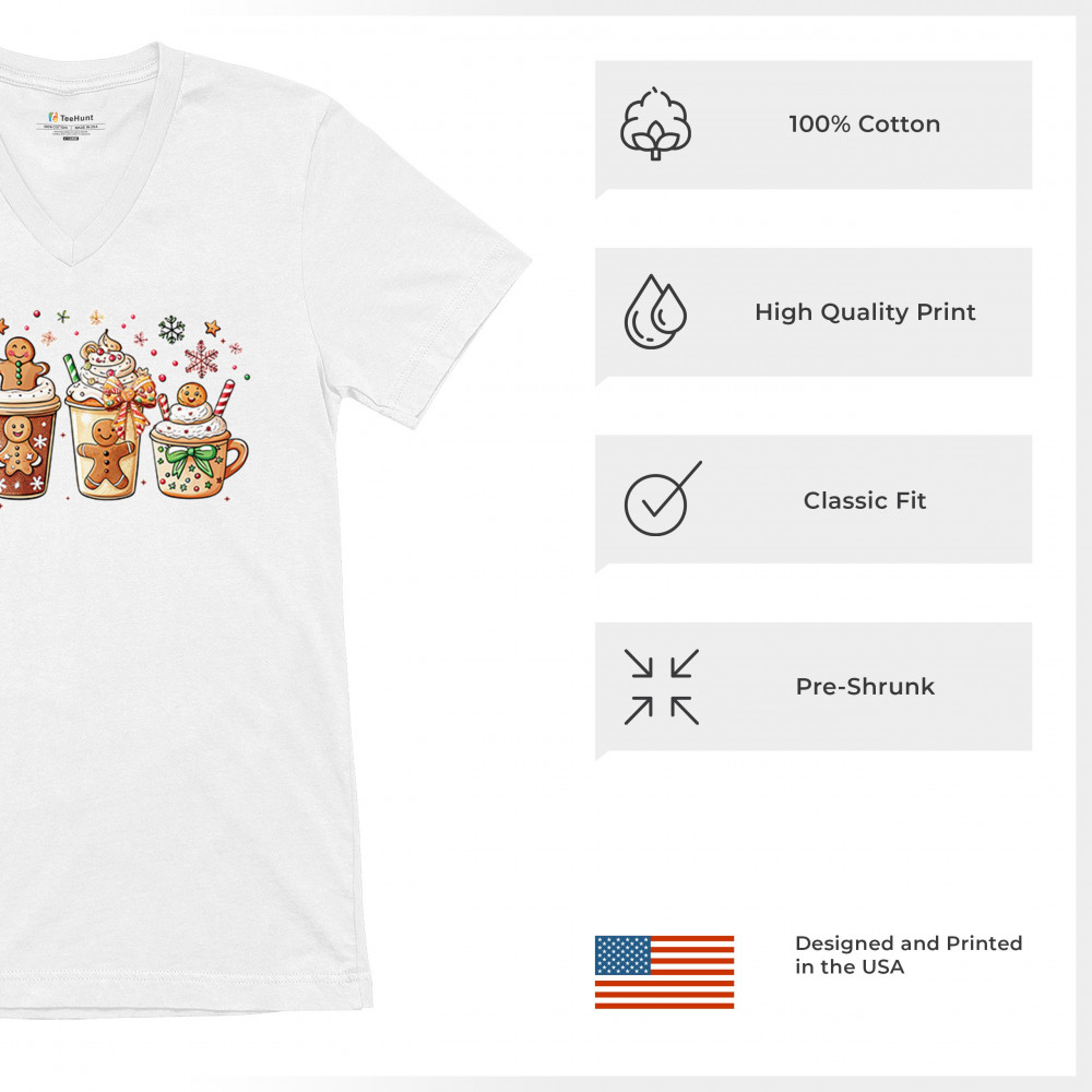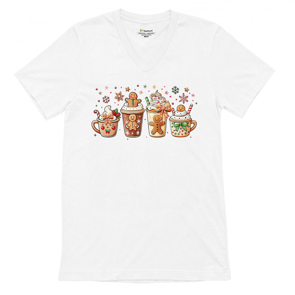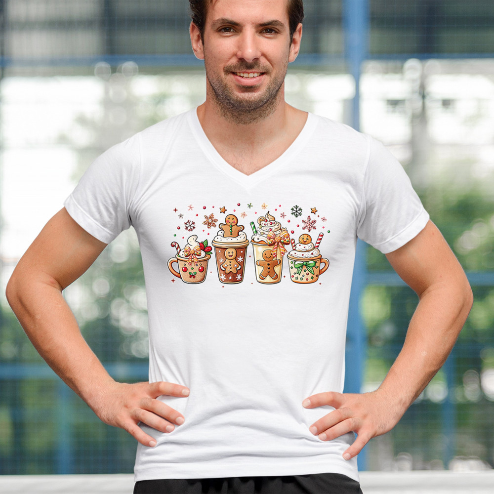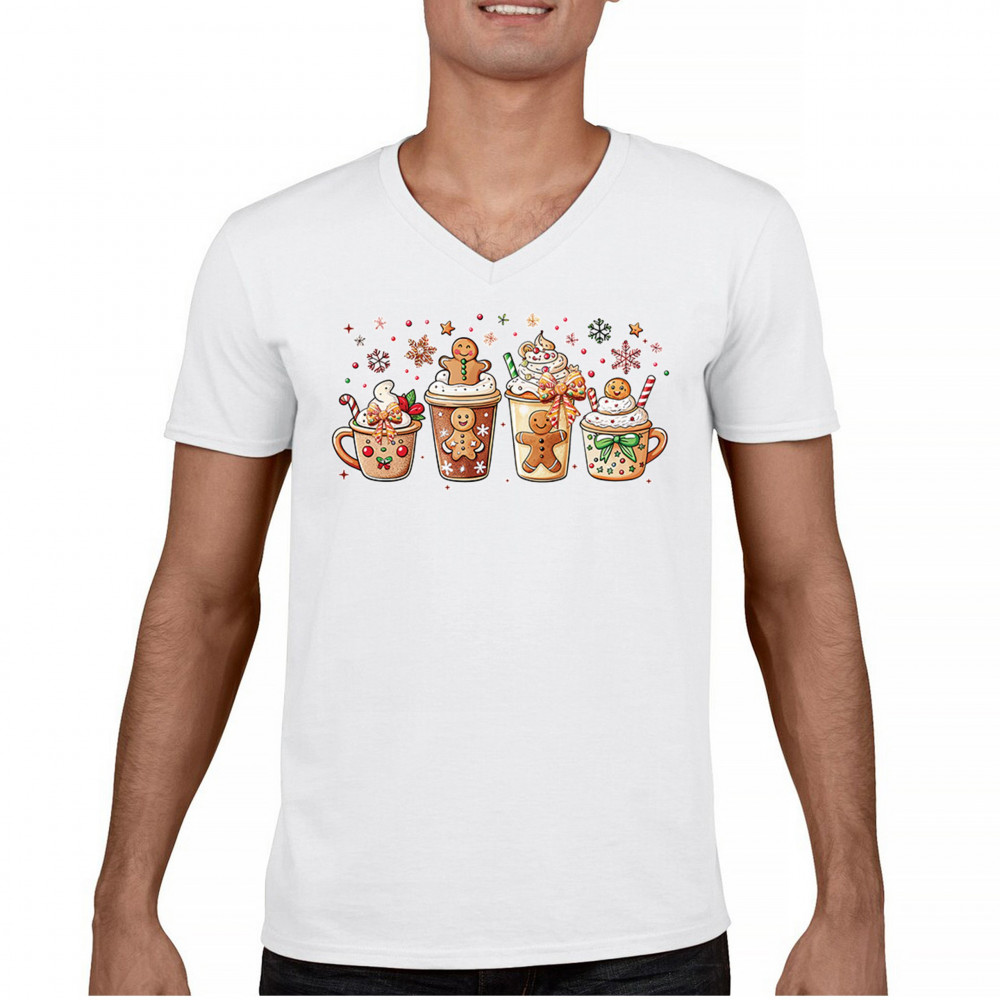 This cute Christmas drink design showcases gingerbread mugs, whipped cream, candy canes, sprinkles, and festive decorations for a warm winter aesthetic. Perfect for cocoa lovers, coffee fans, bakers, cozy holiday nights, gift exchanges, Christmas morning vibes, seasonal parties, and anyone who loves adorable dessert-inspired holiday art.