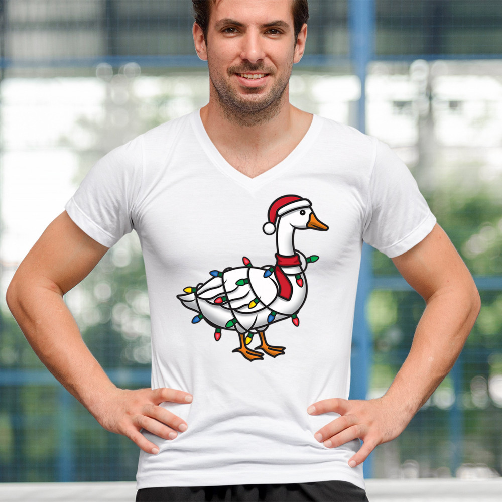 Funny Christmas goose wrapped in lights with festive humor, perfect for holiday gifting, white elephant exchanges, and cheerful seasonal style.