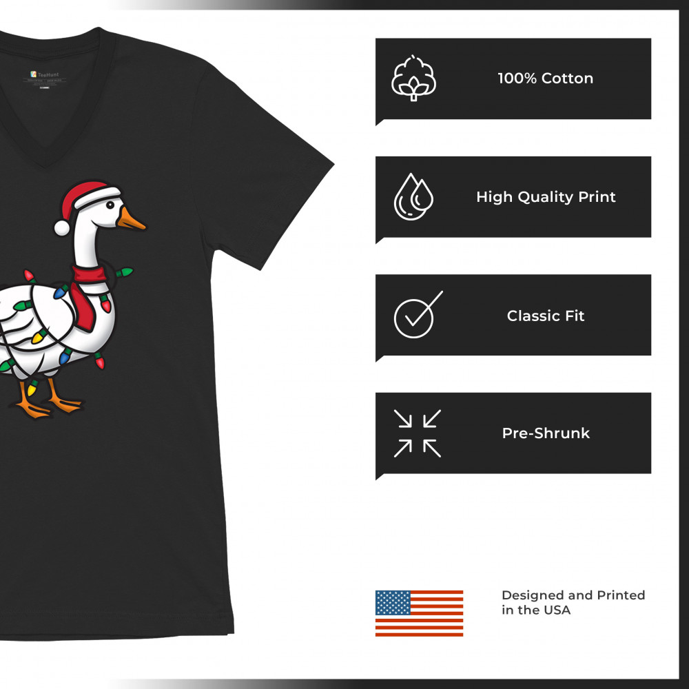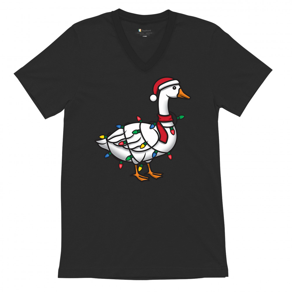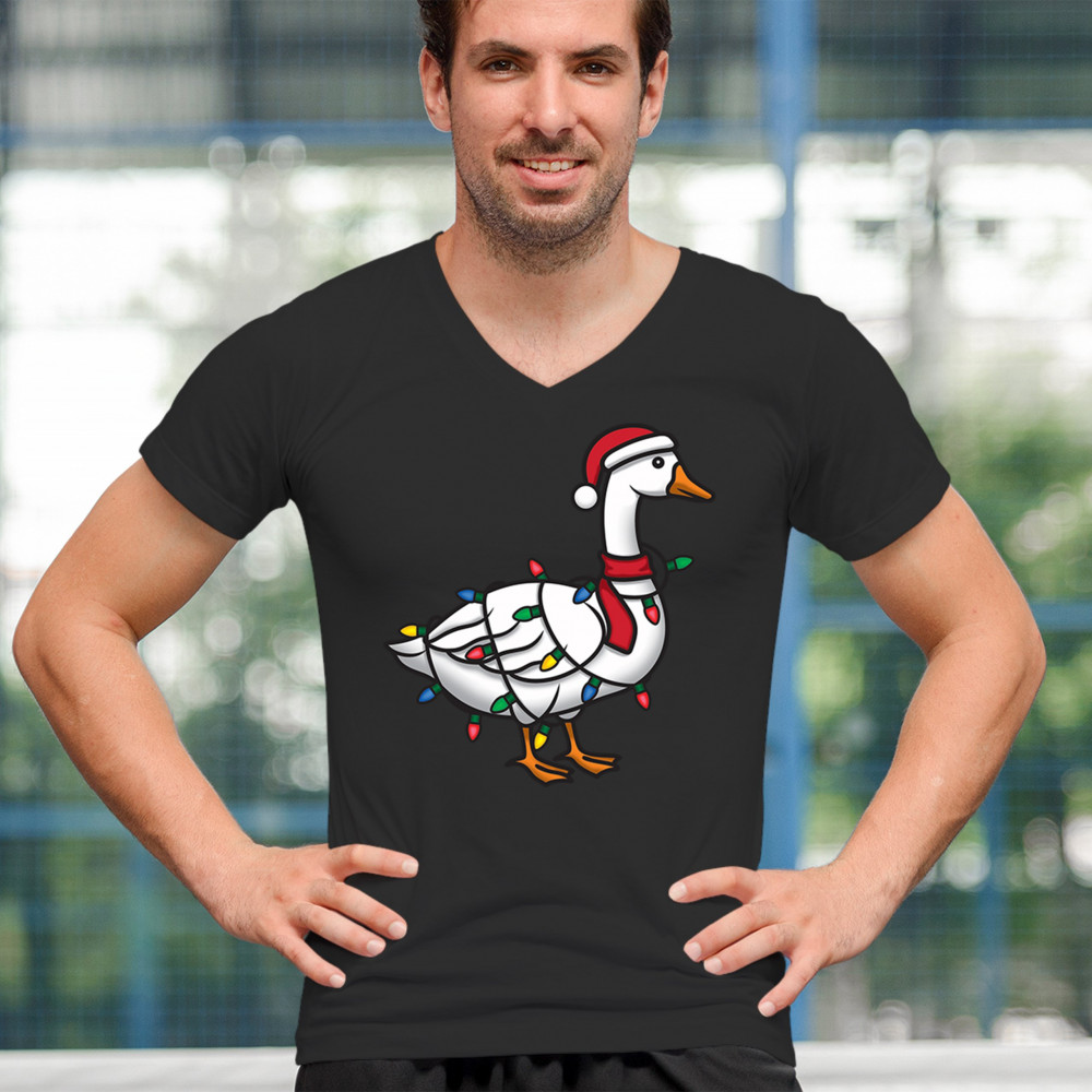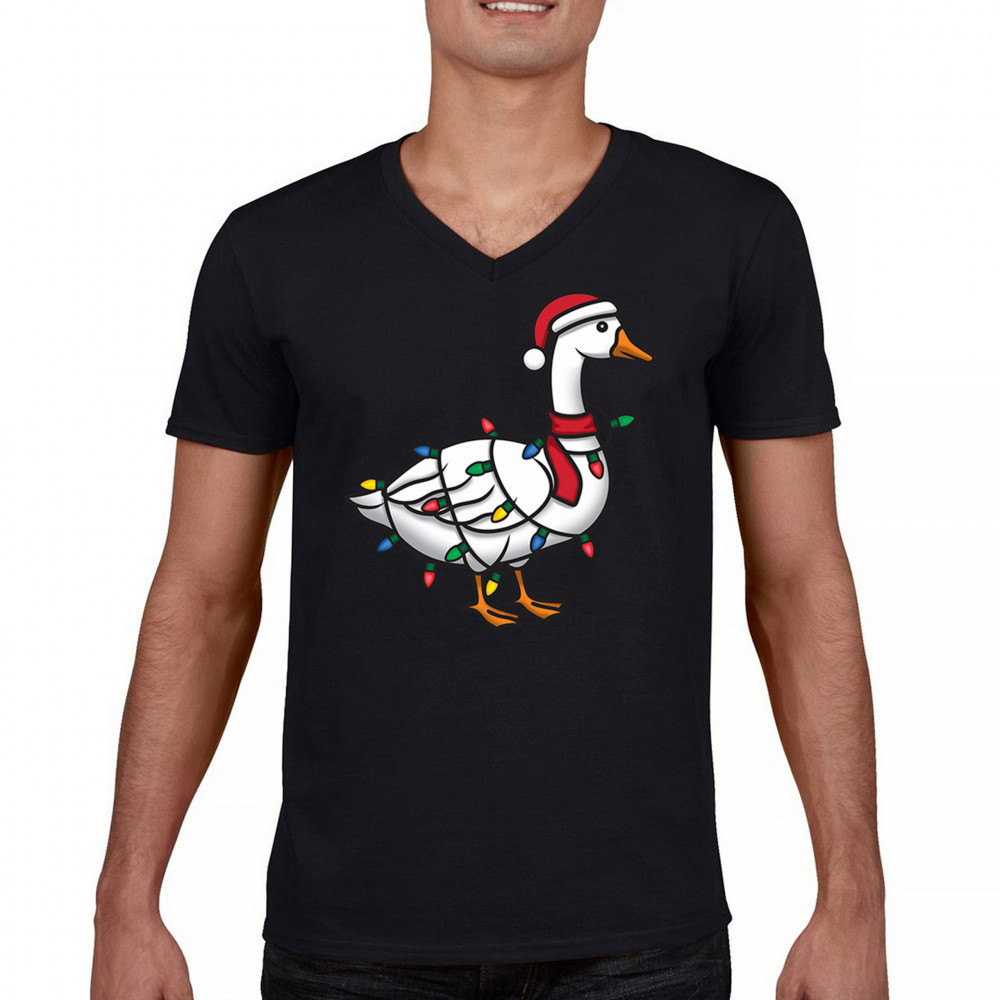 CHRISTMAS GOOSE men's v-neck t-shirt jolly xmas lights secret santa gift idea black