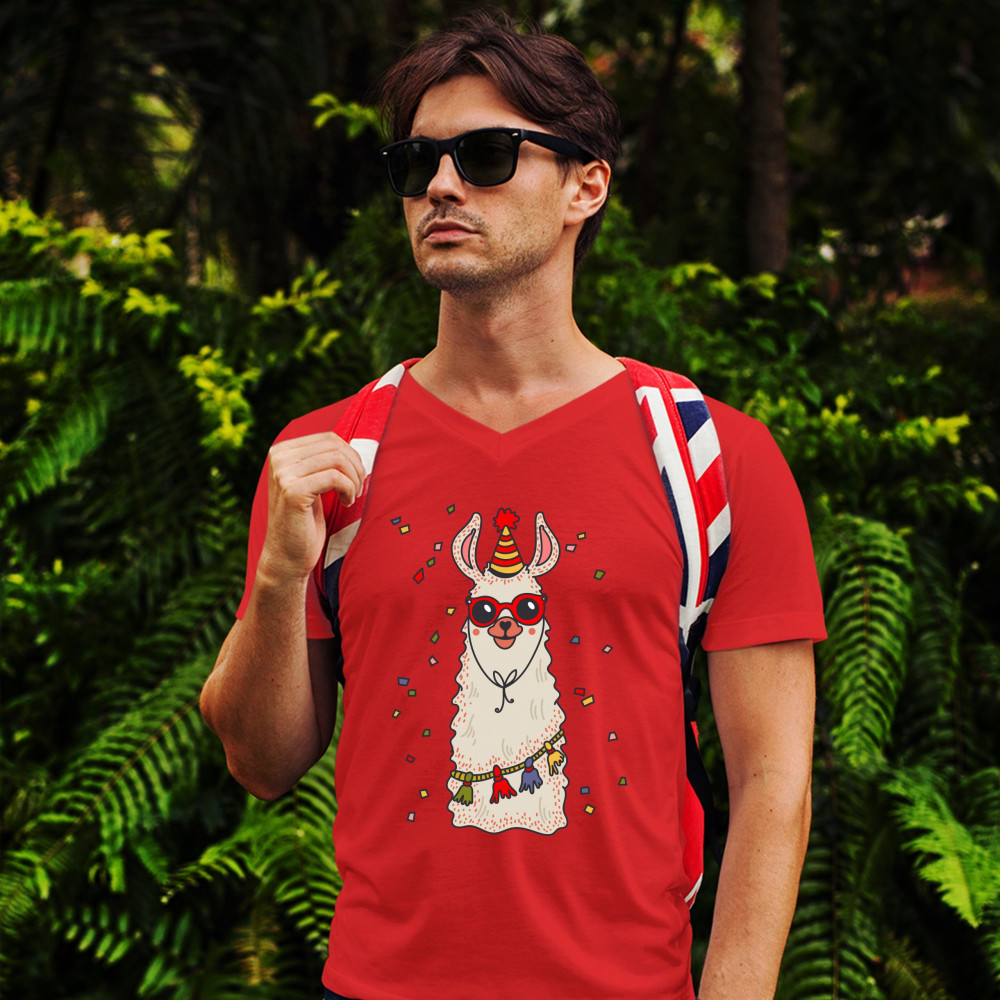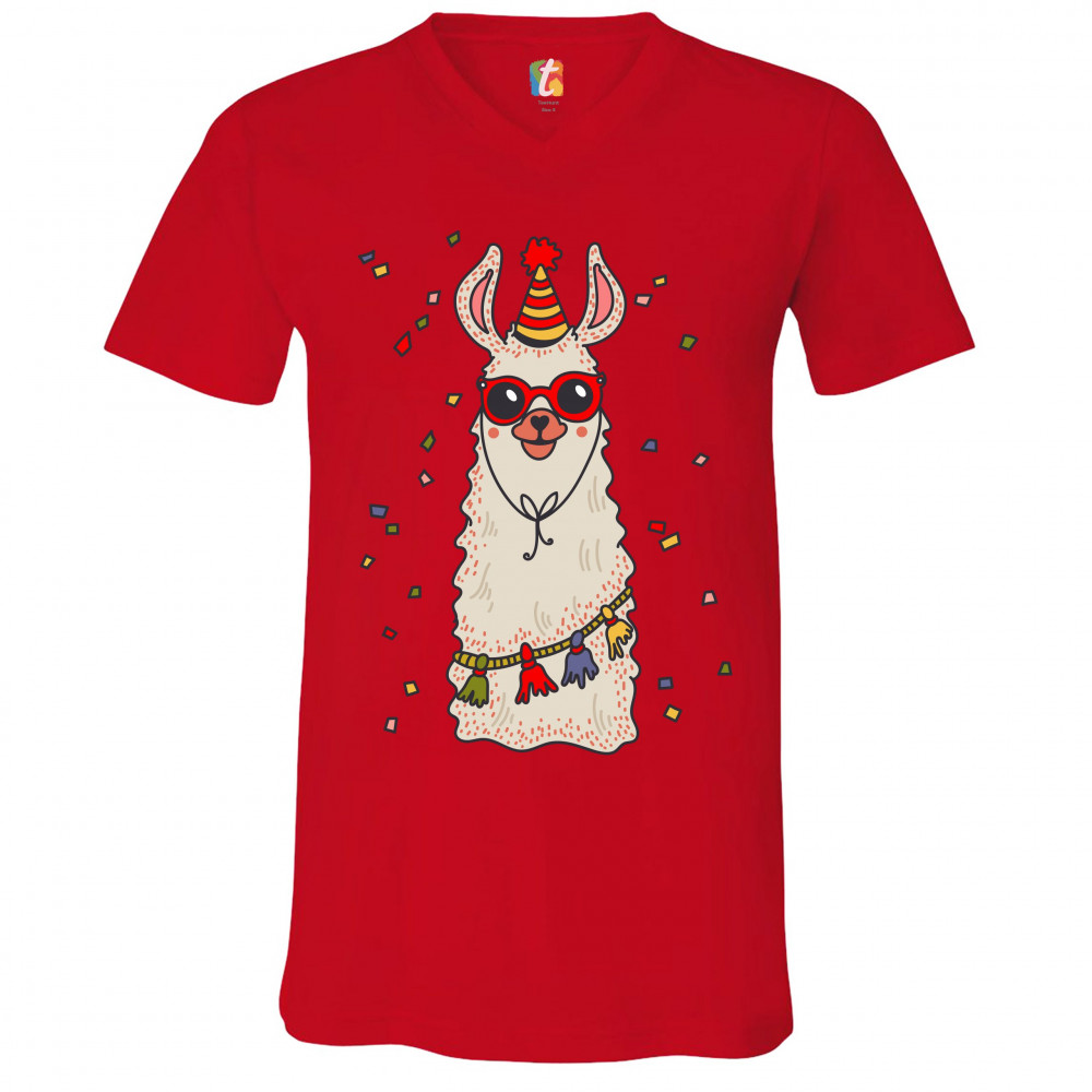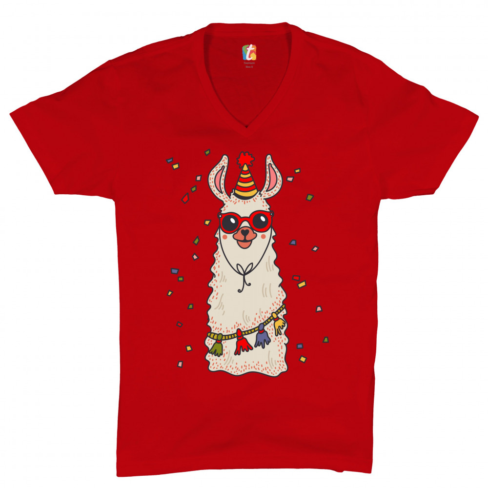 CHRISTMAS LLAMA v-neck t-shirt merry and bright let it snow funny xmas tee red