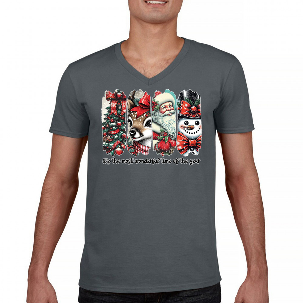 This Christmas design blends a decorated tree, sweet reindeer, vintage Santa, and a bright snowman for a classic seasonal look. Ideal for holiday lovers, winter gatherings, festive parties, gift exchanges, Christmas morning, and anyone who enjoys cheerful, nostalgic holiday art. A warm, eye-catching design that brings out the magic of the season.