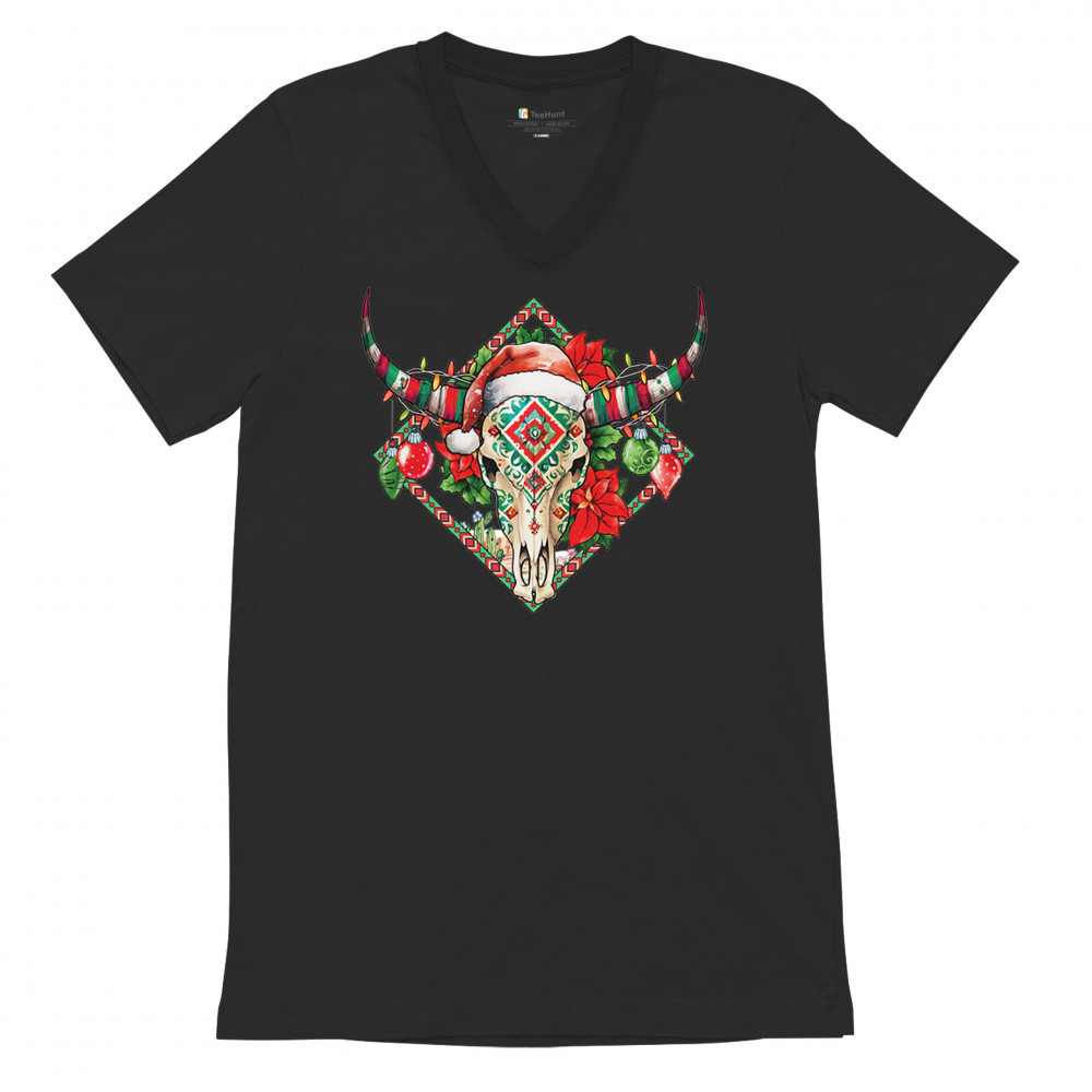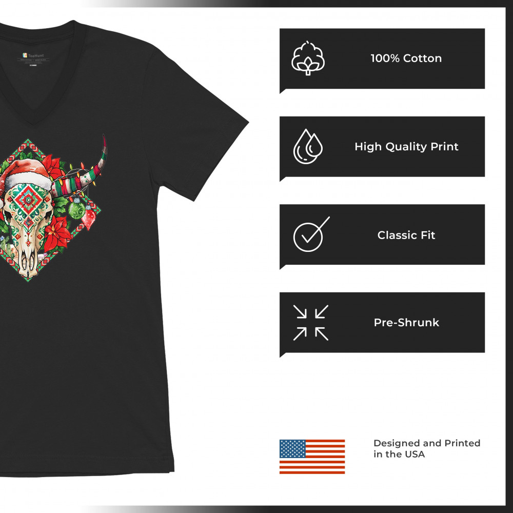Blend Southwestern charm with holiday cheer! This vibrant skull design with poinsettias and ornaments is perfect for festive parties and unique gifts!