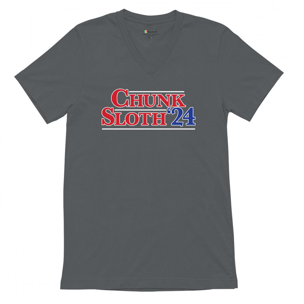 Celebrate 80s nostalgia and political humor with our Chunk and Sloth '24 design. Perfect for casual wear, movie nights, and themed parties. Durable and stylish.