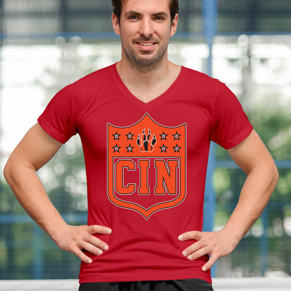 Celebrate your love for Cincinnati football with this CIN shield paw design, blending retro football crest style with vintage football culture. Perfect for Cincinnati sports culture, Cincinnati champions, and Cincinnati football nation, this design embodies underdog spirit, Cincinnati grit, and college football culture. A bold look for Saturday football vibes, Sunday football, and every big game.