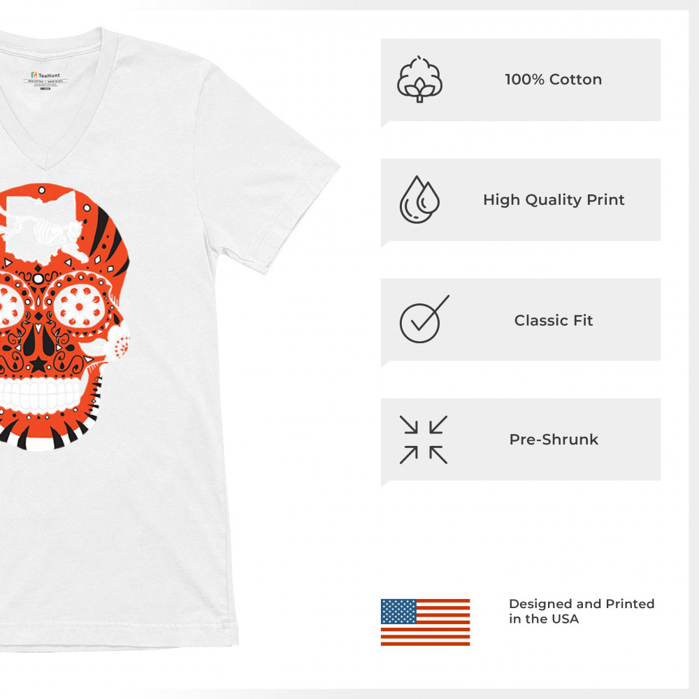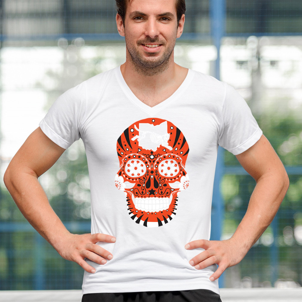 Celebrate Cincinnati football with this Sugar Skull design featuring the Queen City Paw. With underdog grit, black & orange pride, and Saturday football culture, it’s made for Game Day excitement, playoff energy, and fantasy league rivalries. A bold calavera for passionate Cincinnati fans.