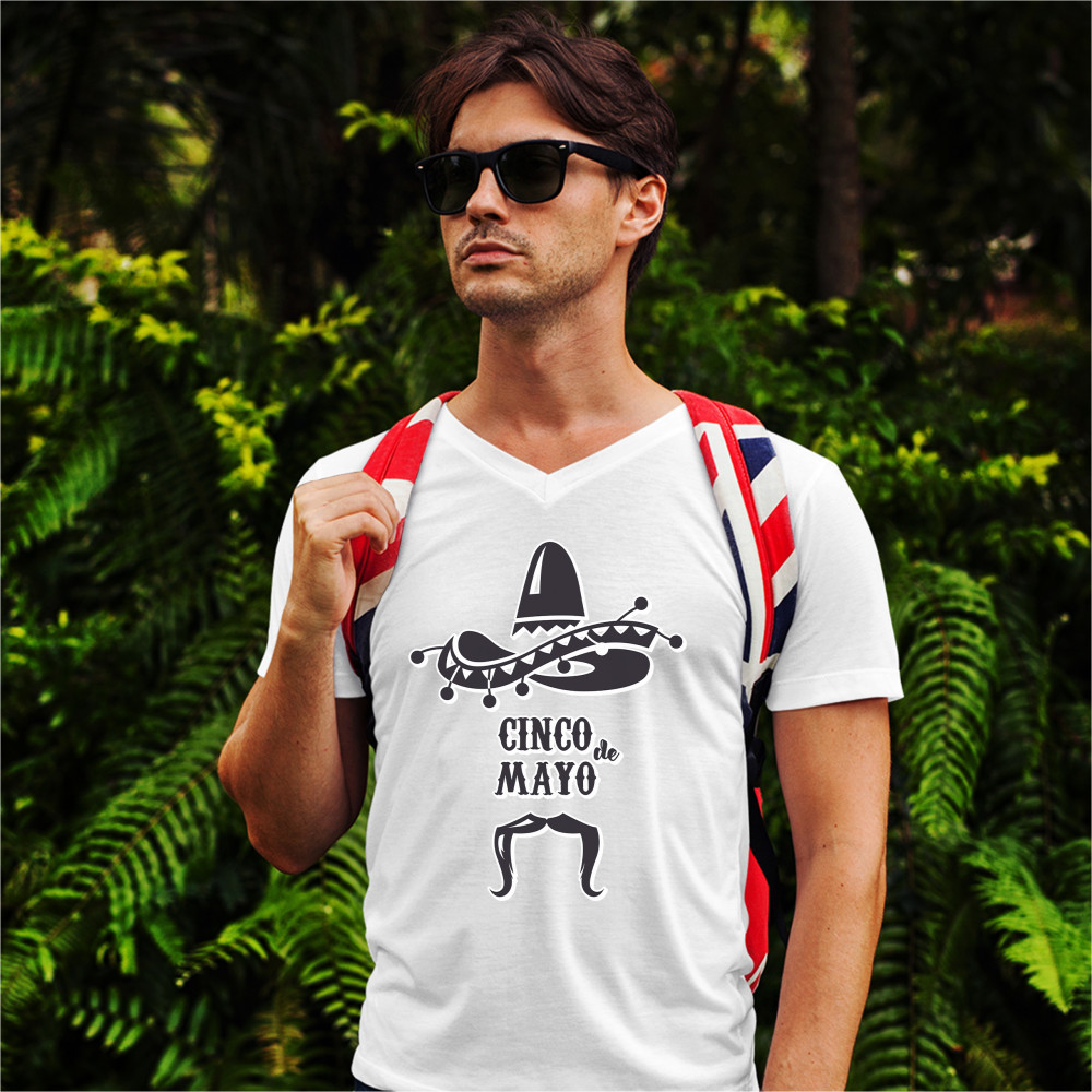 CINCO DE MAYO v-neck t-shirt funny party sombrero mexican culture fiesta tee white