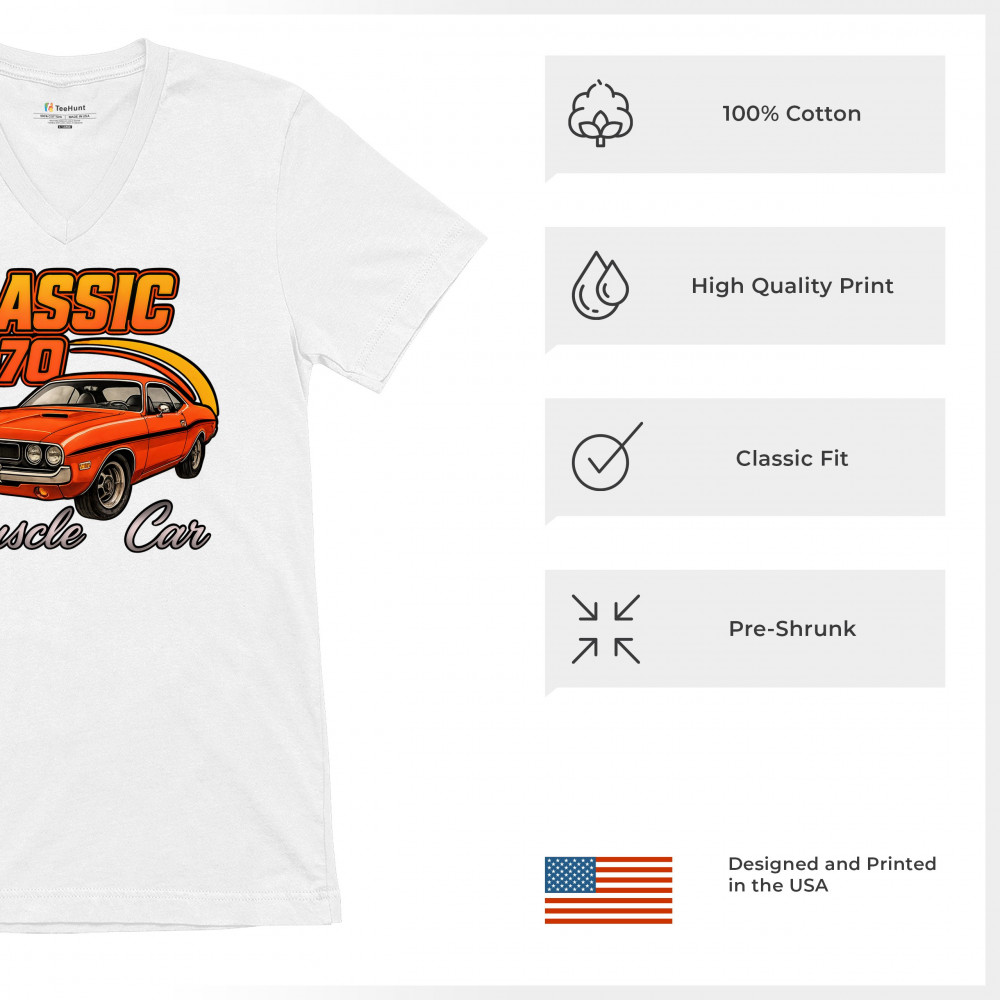 Show your pride for American muscle with this bold 1970 design featuring a classic orange coupe in retro detail. Perfect for gearheads, vintage car lovers, and collectors who live for the sound of old-school performance. A tribute to the raw attitude and street dominance of 1970 muscle.