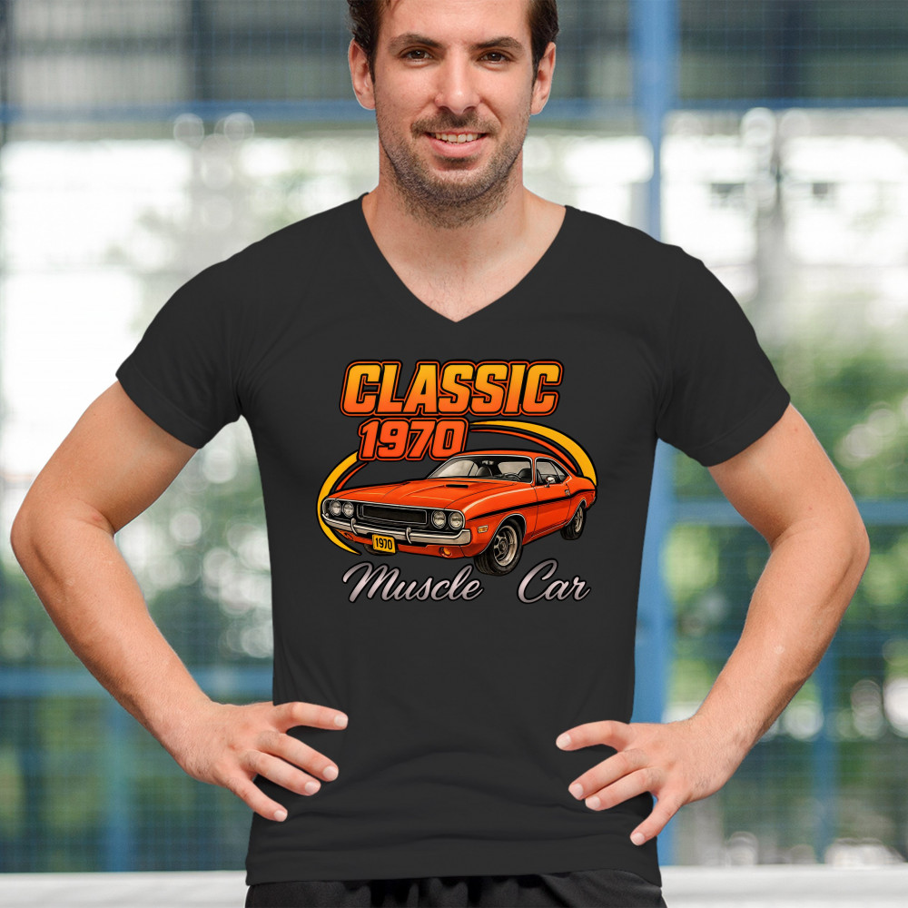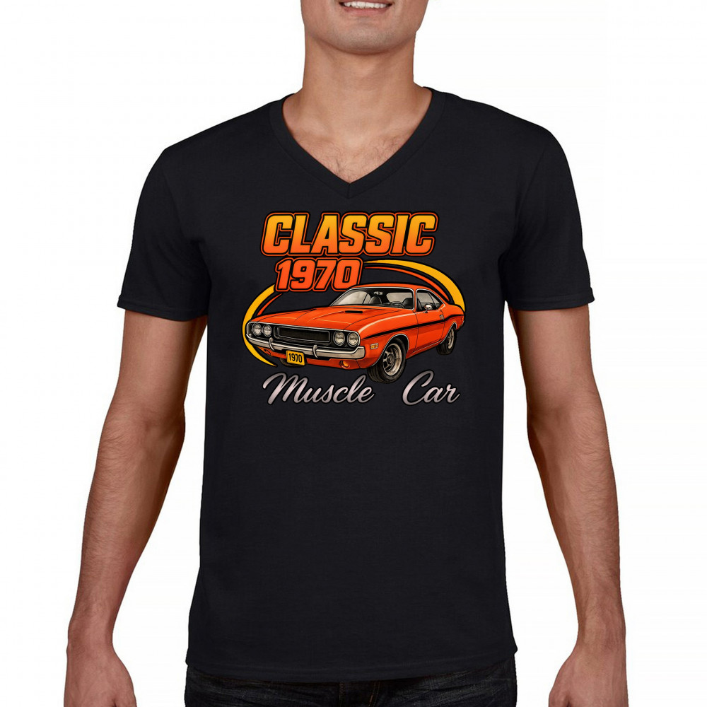 Show your pride for American muscle with this bold 1970 design featuring a classic orange coupe in retro detail. Perfect for gearheads, vintage car lovers, and collectors who live for the sound of old-school performance. A tribute to the raw attitude and street dominance of 1970 muscle.