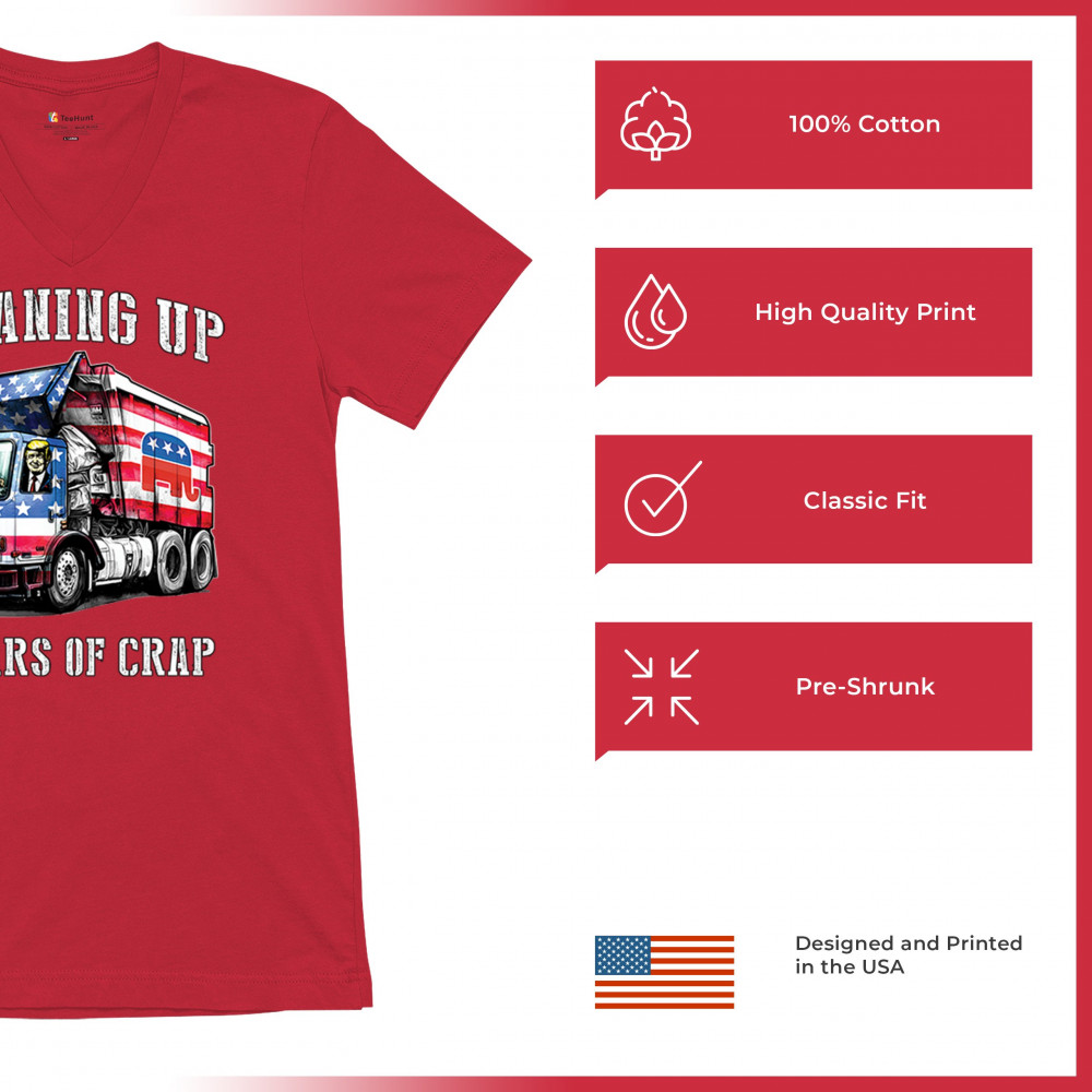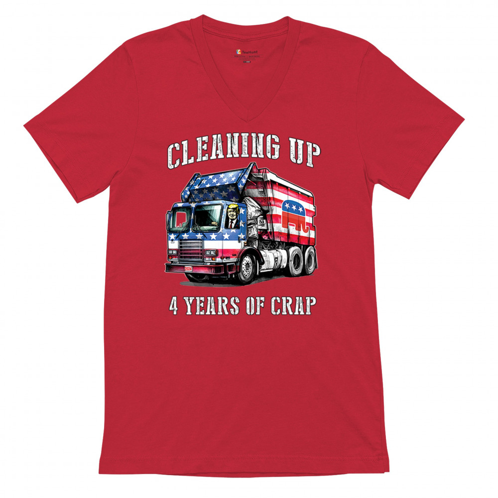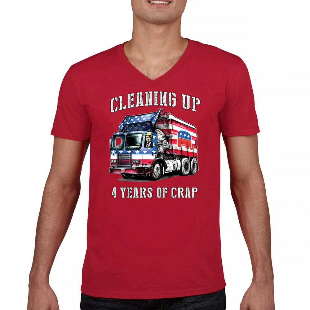 Bold "Cleaning Up 4 Years of Crap" design featuring Trump, the GOP, and the American flag. Perfect for proud conservatives and patriots.