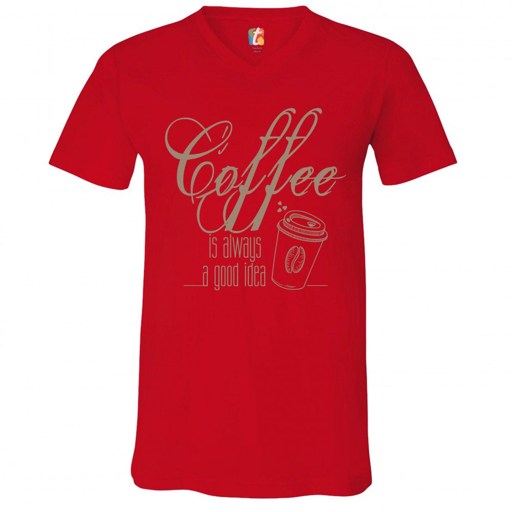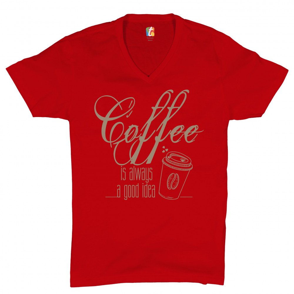A print saying "Coffee is always a good idea". The print features a picture of a paper cup of tea with a coffee bean on it and with several hearts steaming from it. A great choice to wear to spread positive vibes and show what a passionate coffee fan you