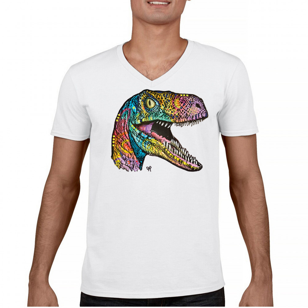 COLORFUL RAPTOR v-neck t-shirt dean russo neon jurassic dinosaur tee white