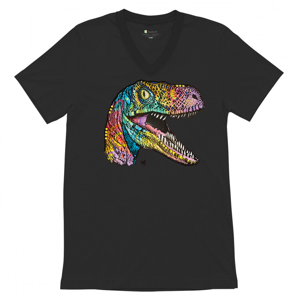 COLORFUL RAPTOR v-neck t-shirt dean russo neon jurassic dinosaur tee black