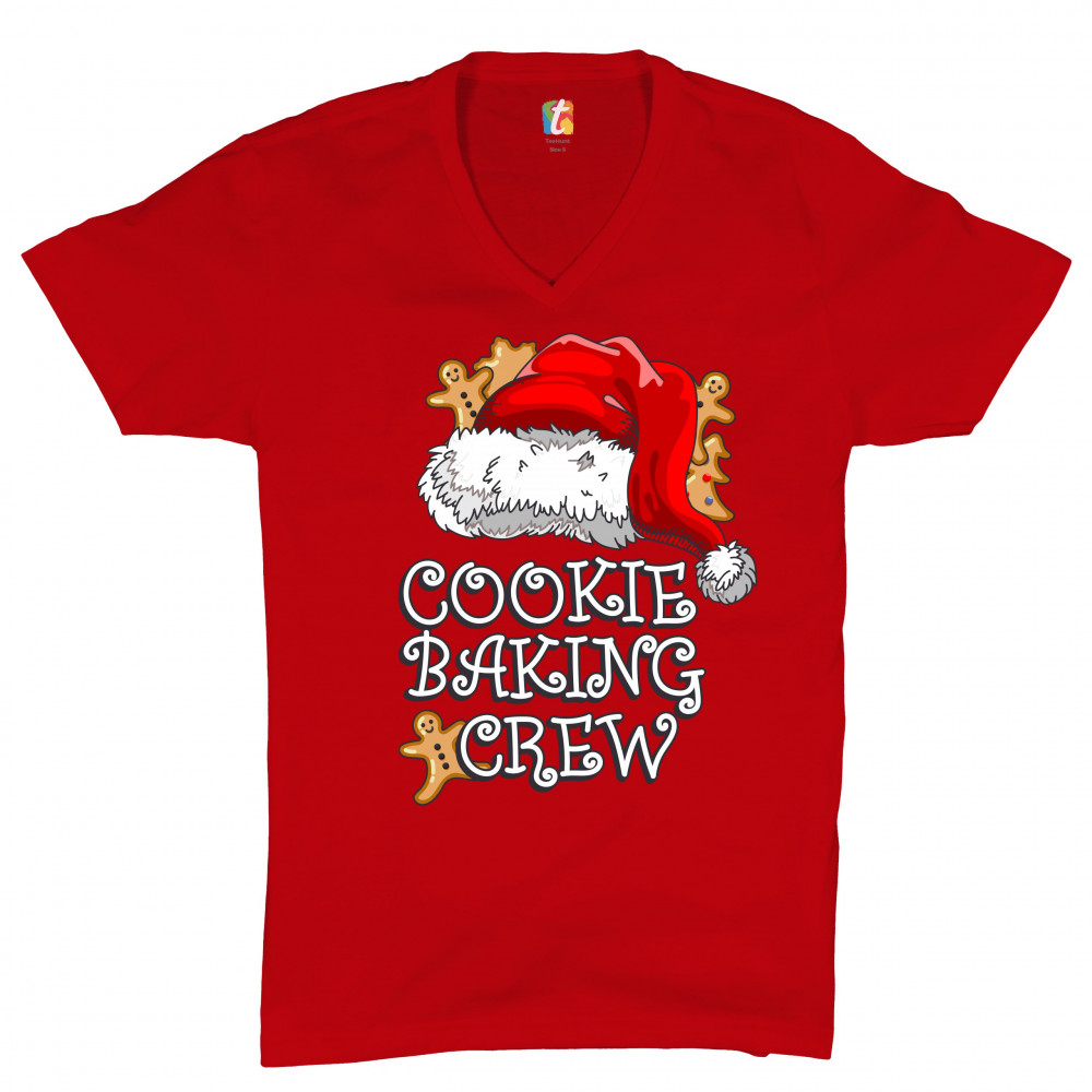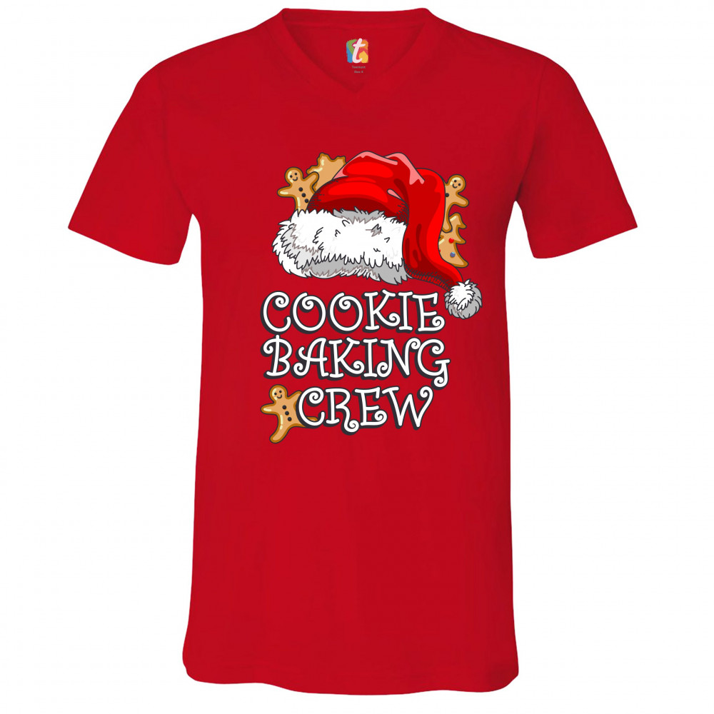 COOKIE BAKING CRUE v-neck t-shirt santa's hat christmas gingerbread men tee red
