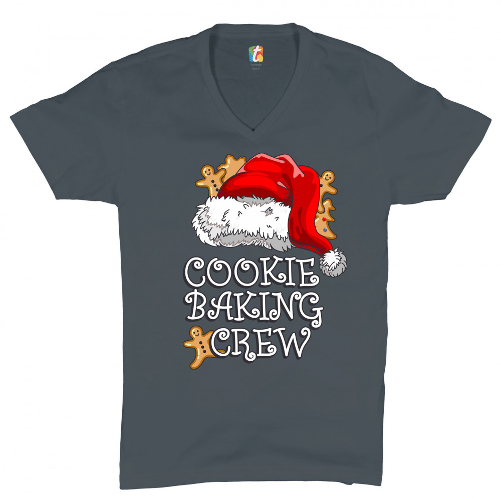 COOKIE BAKING CRUE v-neck t-shirt santa's hat christmas gingerbread men tee charcoal