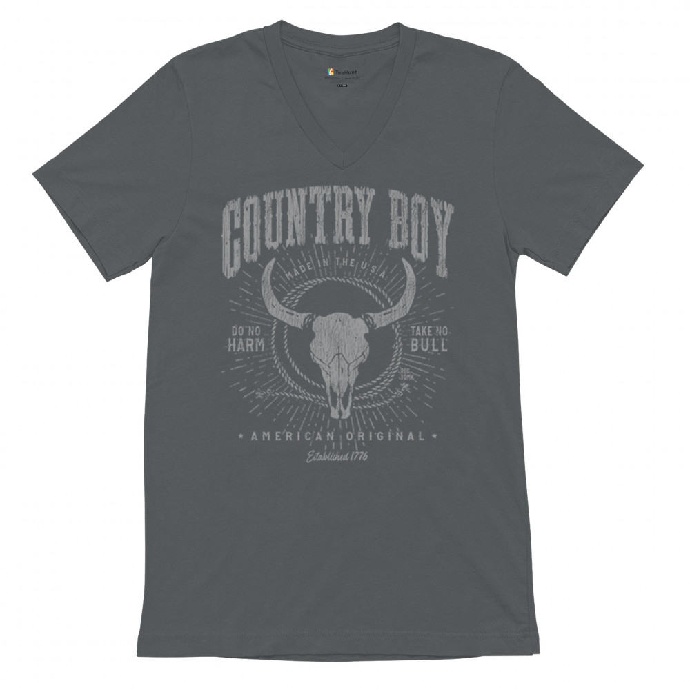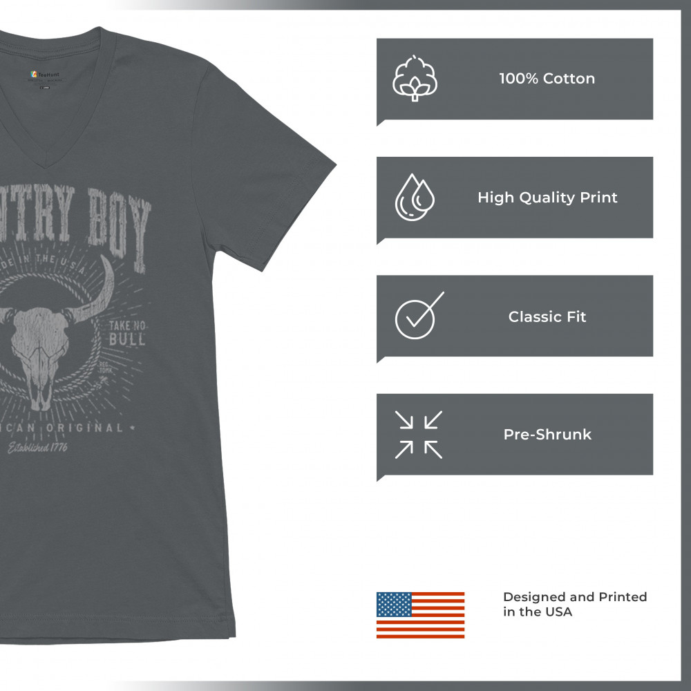 Bold country boy design with bull skull, distressed western style, patriotic grit, and the phrase “Do No Harm, Take No Bull.â€