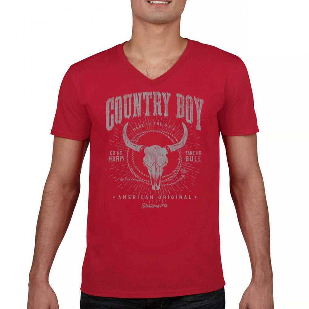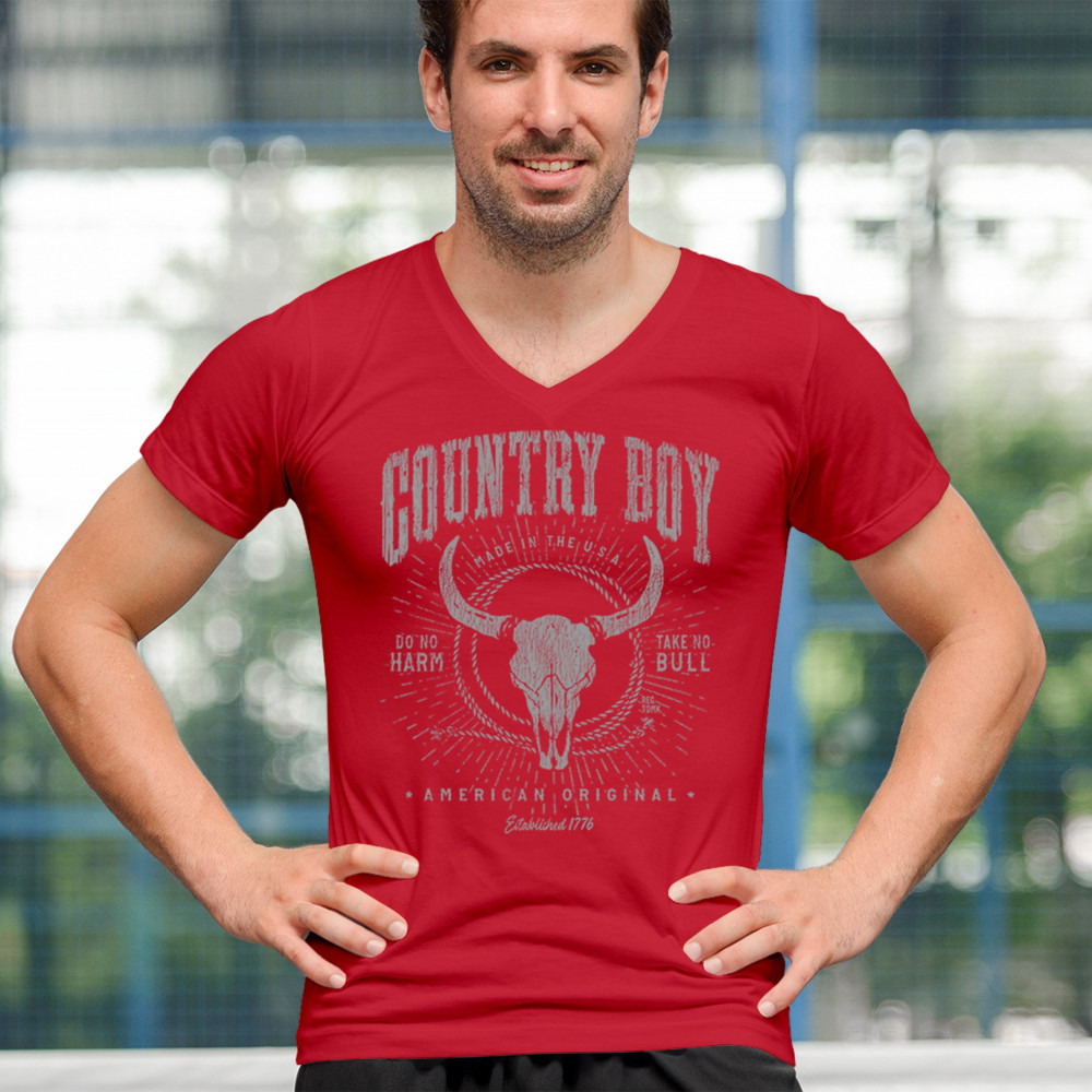Bold country boy design with bull skull, distressed western style, patriotic grit, and the phrase “Do No Harm, Take No Bull.â€