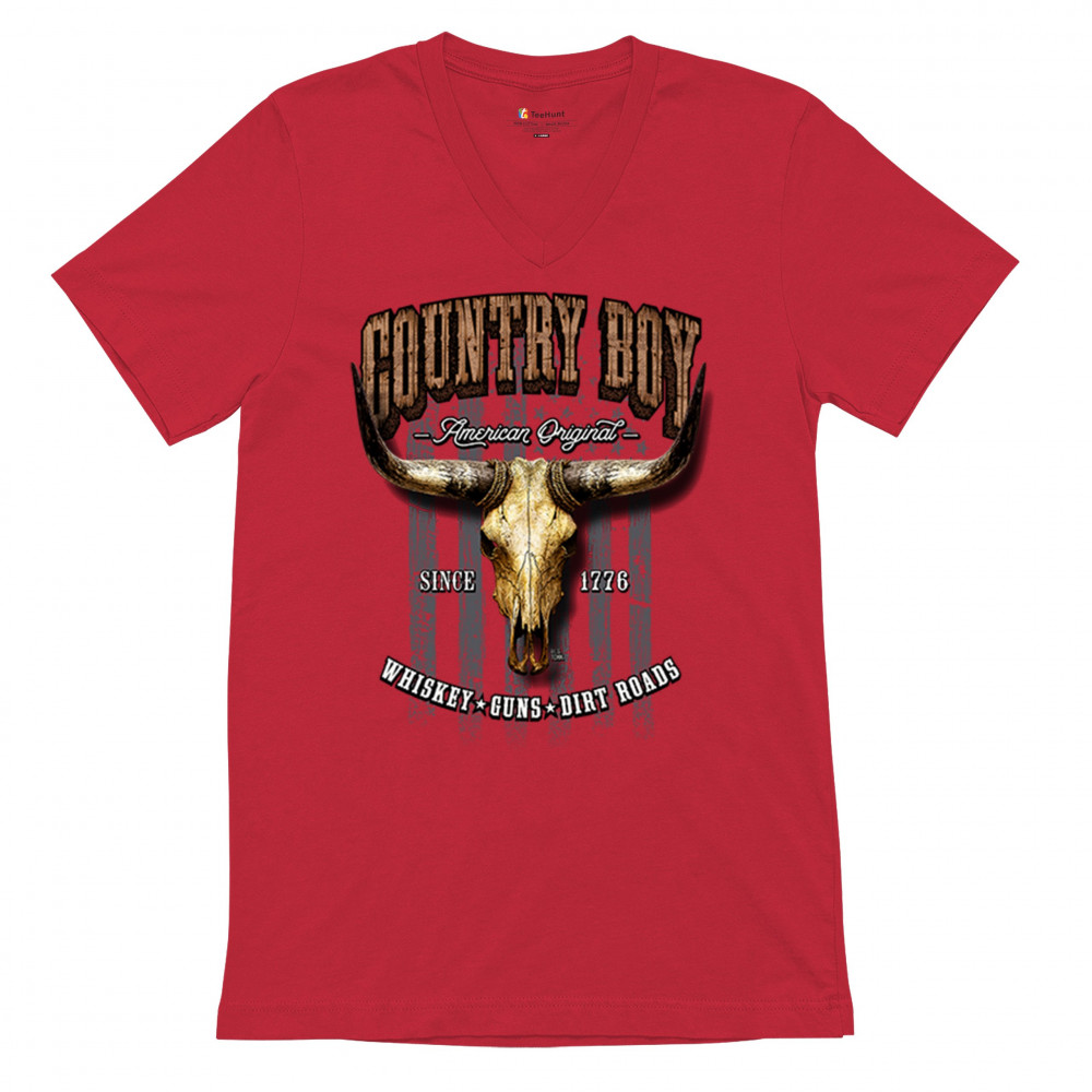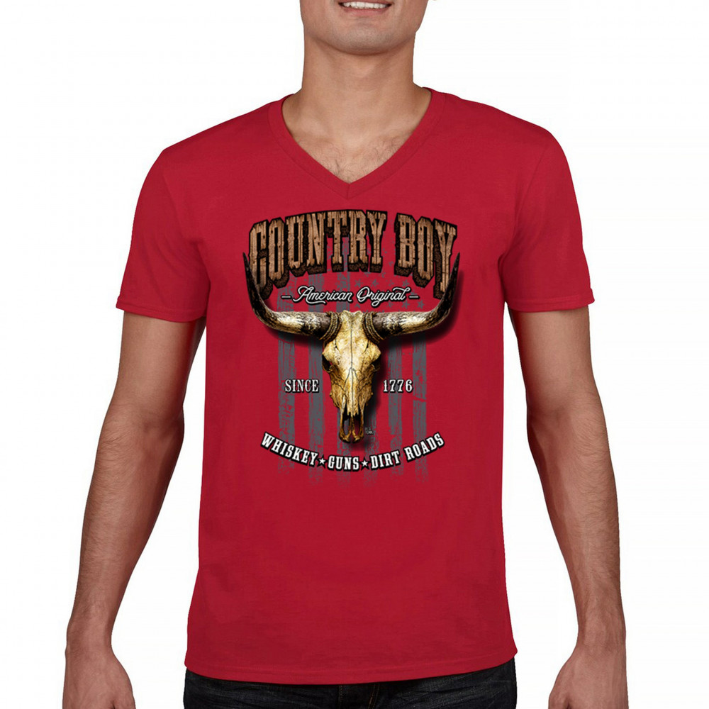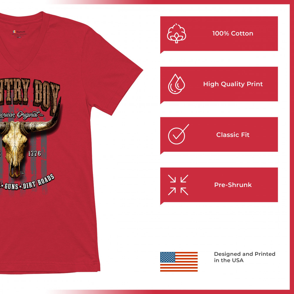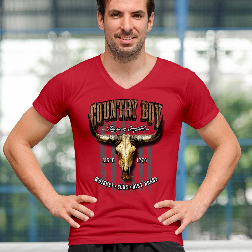 Country Boy – American Original. This bold western design captures the essence of southern living with a vintage bull skull, rustic lettering, and pride in whiskey, guns, and dirt roads. From 1776 to today, it honors the heritage of freedom-loving country men. Wear it to rodeos, bonfires, or muddy trails.