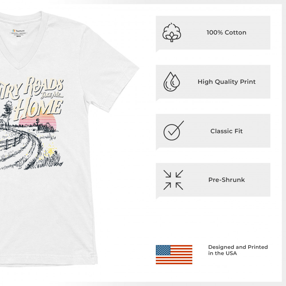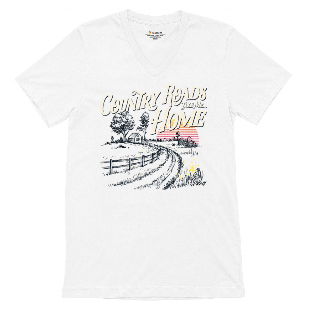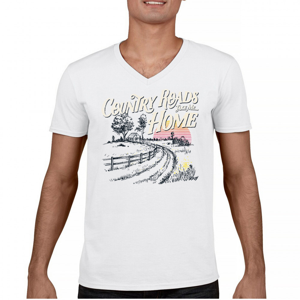 COUNTRY ROADS TAKE ME HOME men's v-neck t-shirt vintage music festival sunset white