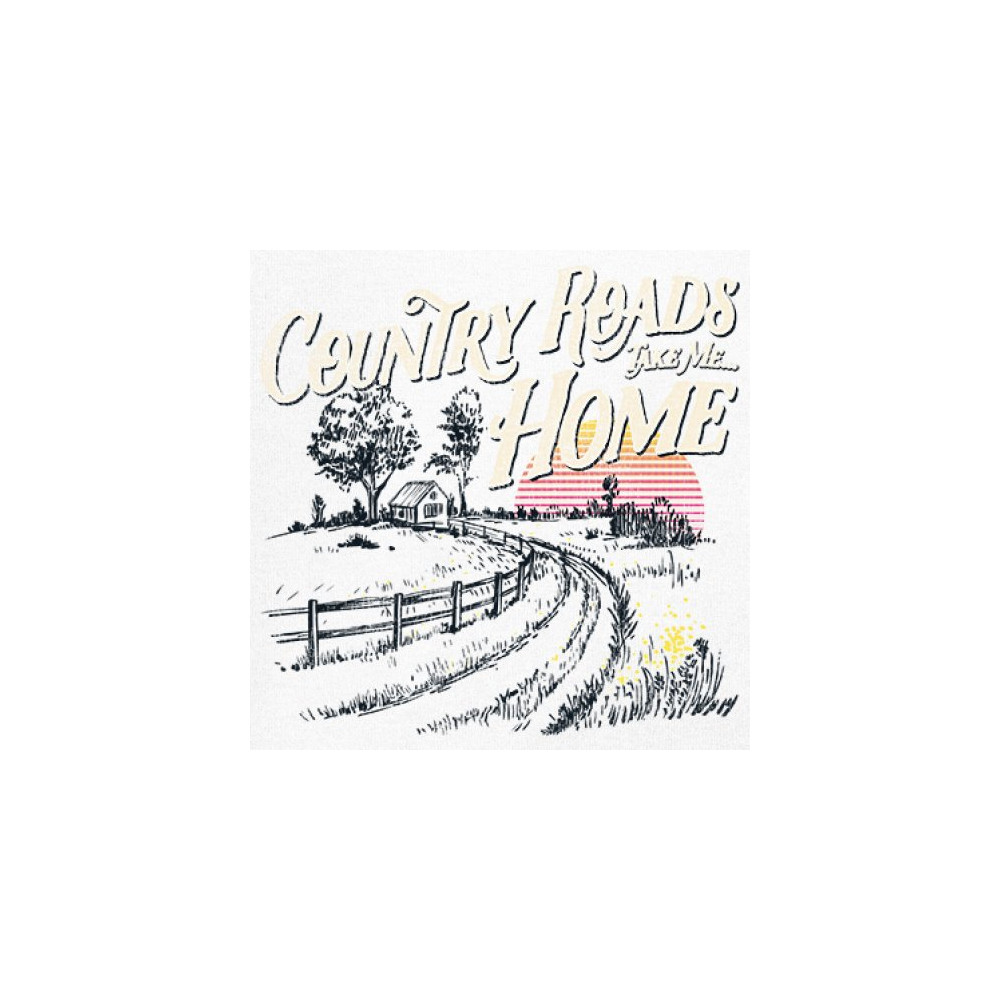 Celebrate your love for small town charm and scenic drives with this nostalgic country roads design. Featuring a bold "Take Me Home" message over a retro-styled sunset, it’s ideal for road trips, summer nights, fairs, concerts, and rural adventures. Let your wanderlust and country soul shine in every mile.