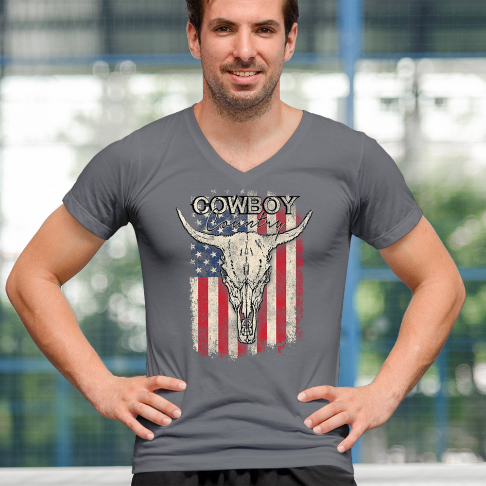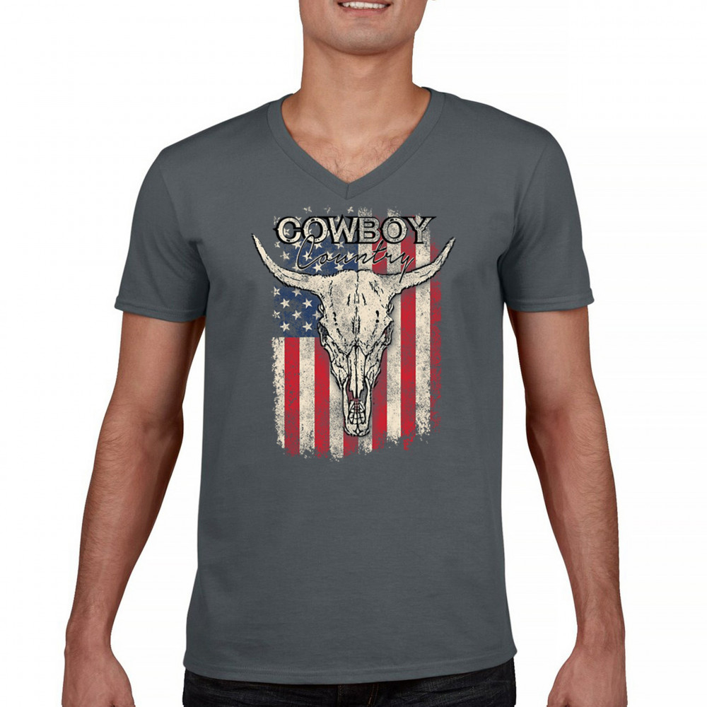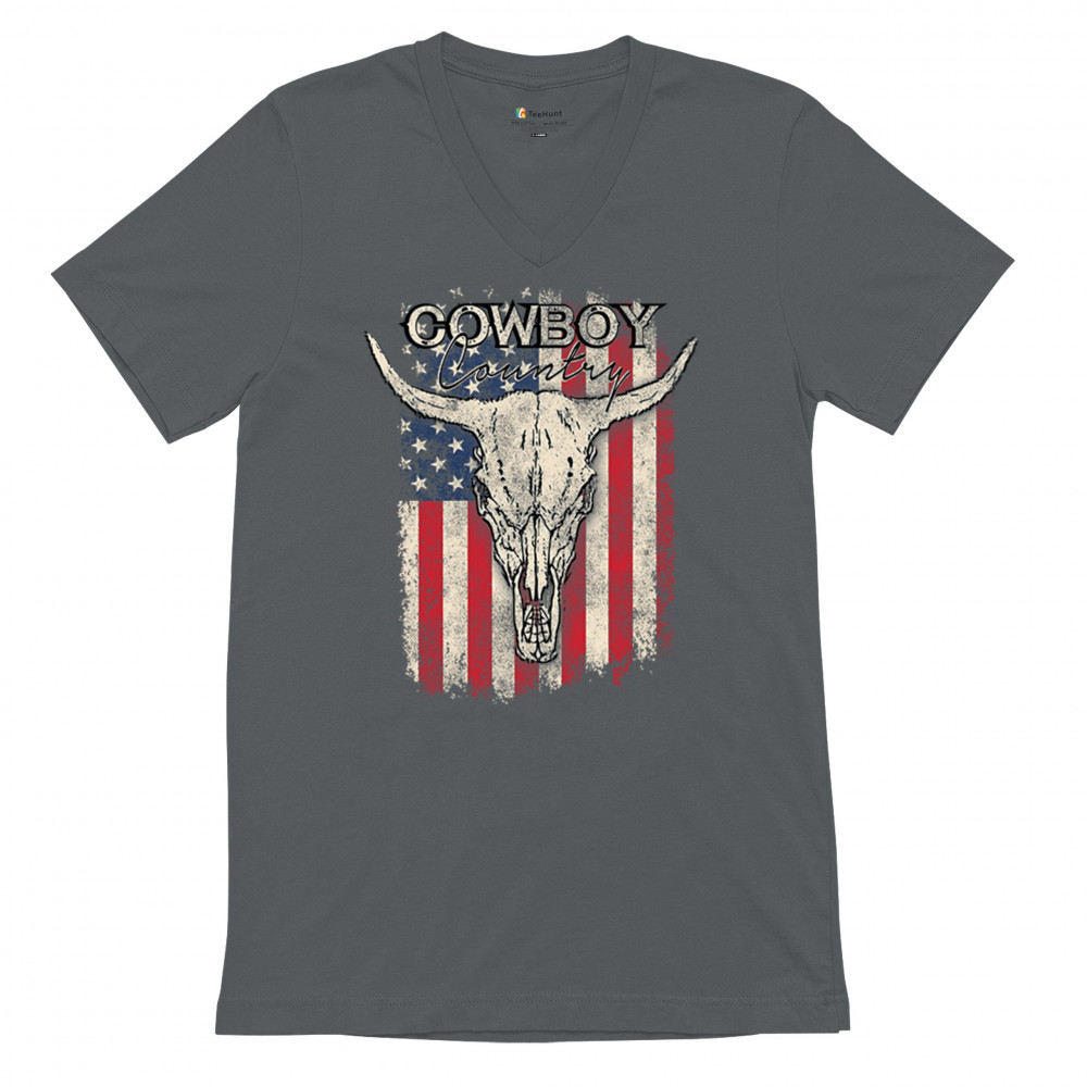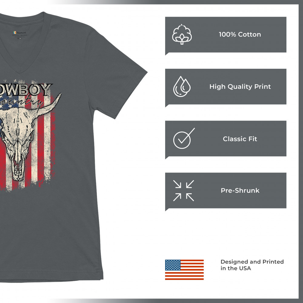 Cowboy Country steer skull design fuses rustic Americana, rodeo style, western heritage, and desert vibes for true frontier spirit.