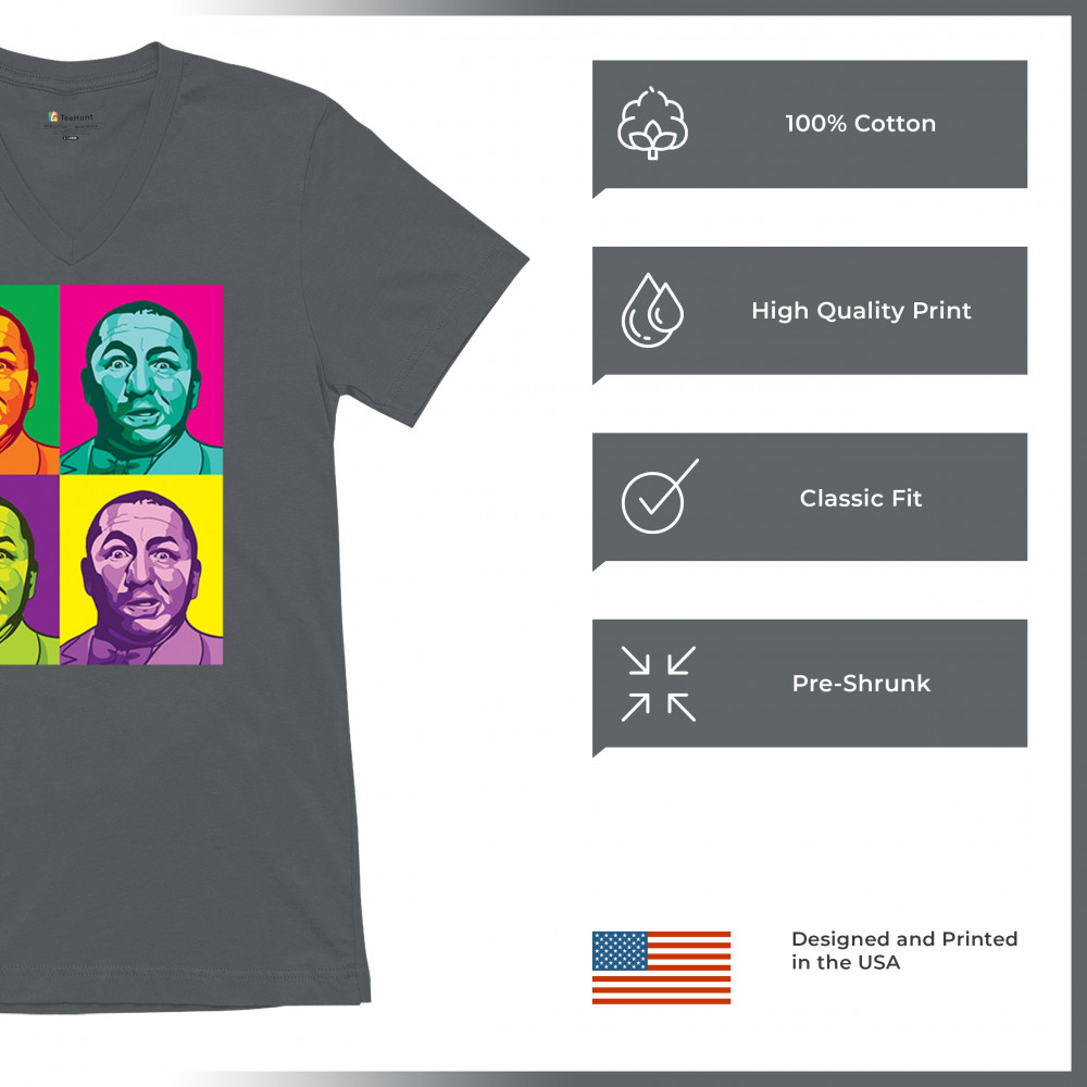 Experience Curly in full color with our pop art Three Stooges T-shirt—a fresh take on a classic that's as unique and spirited as the man himself!