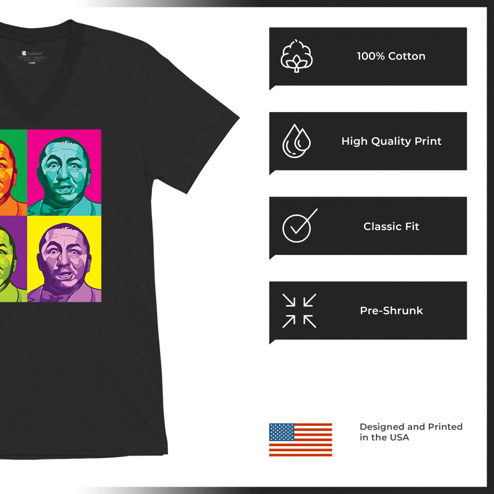 Experience Curly in full color with our pop art Three Stooges T-shirt—a fresh take on a classic that's as unique and spirited as the man himself!