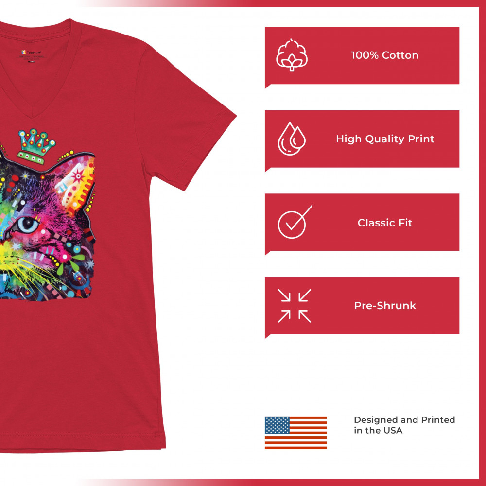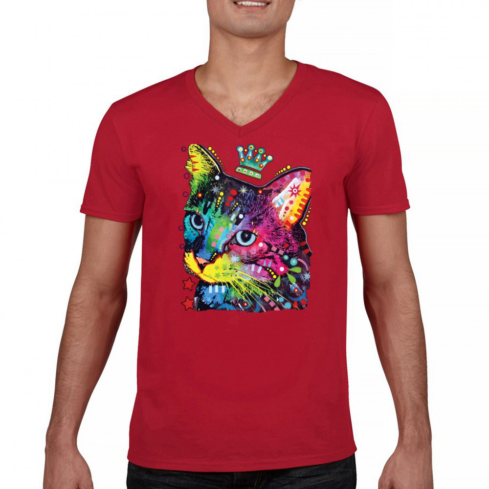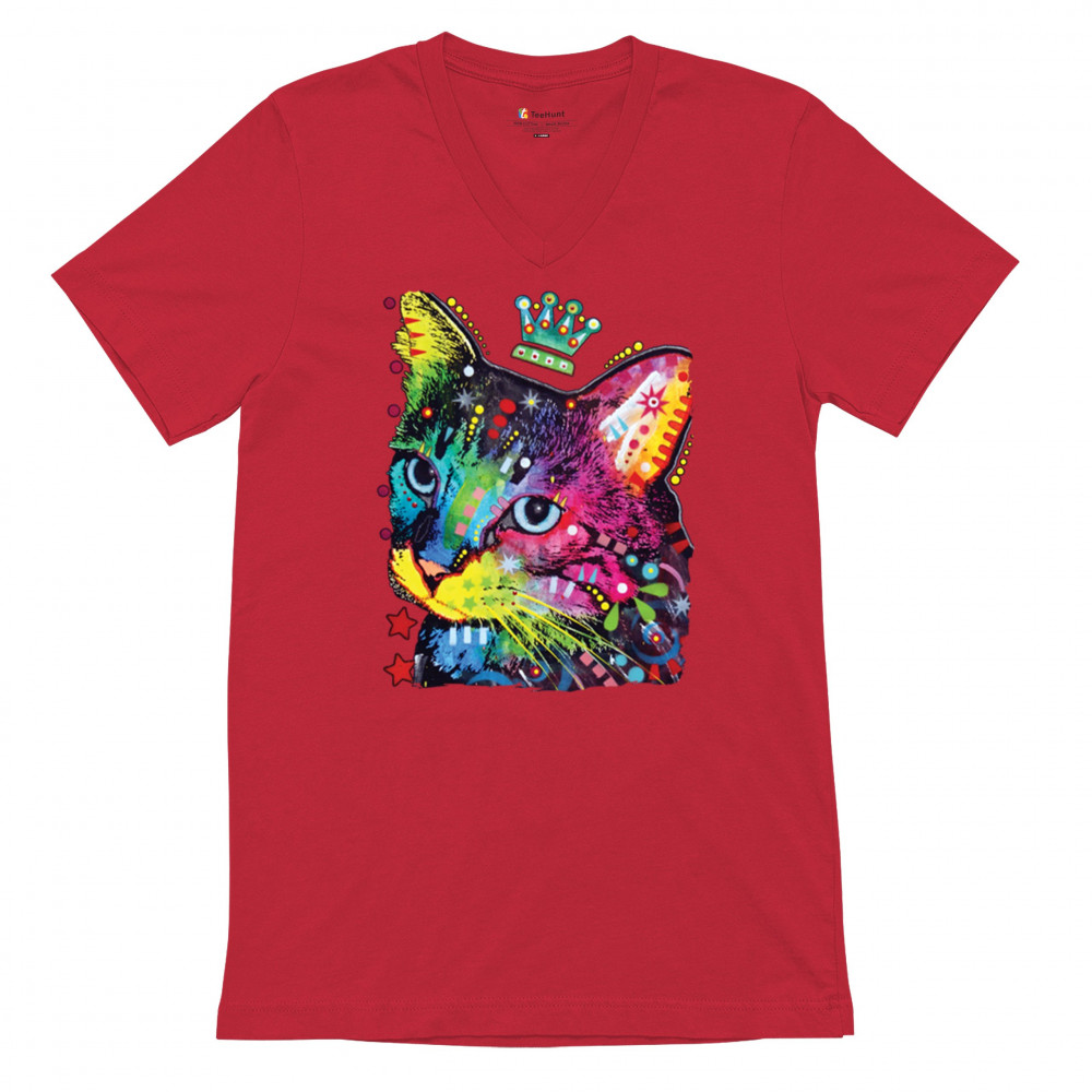 CUTE THINKING CROWNED CAT v-neck t-shirt dean russo colorful kitten tee red