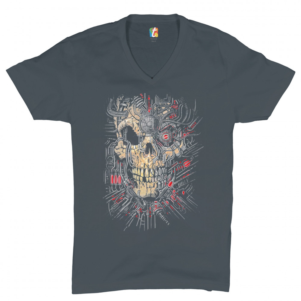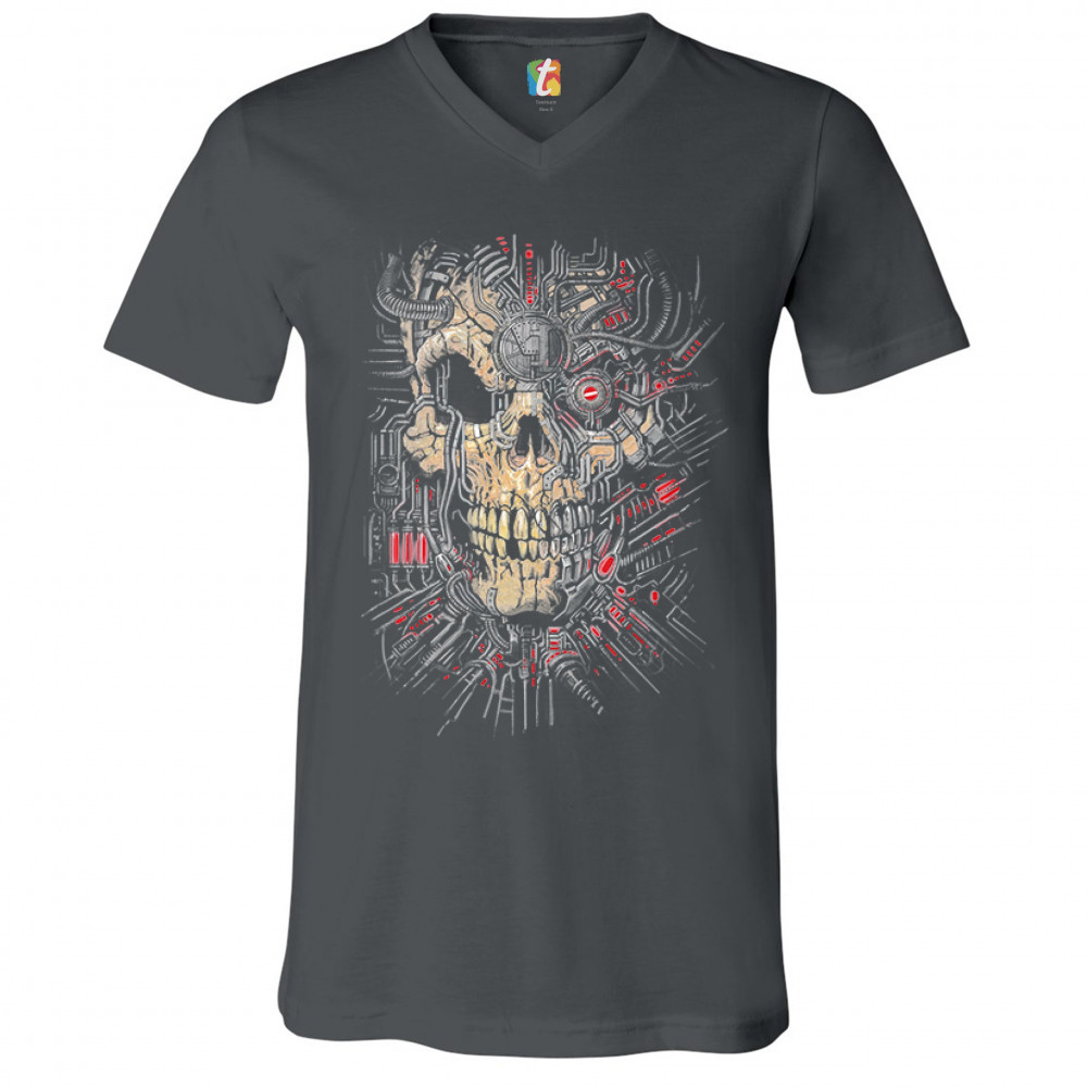 CYBORG SKULL FACE v-neck t-shirt scary cyberpunk robot horror tee charcoal